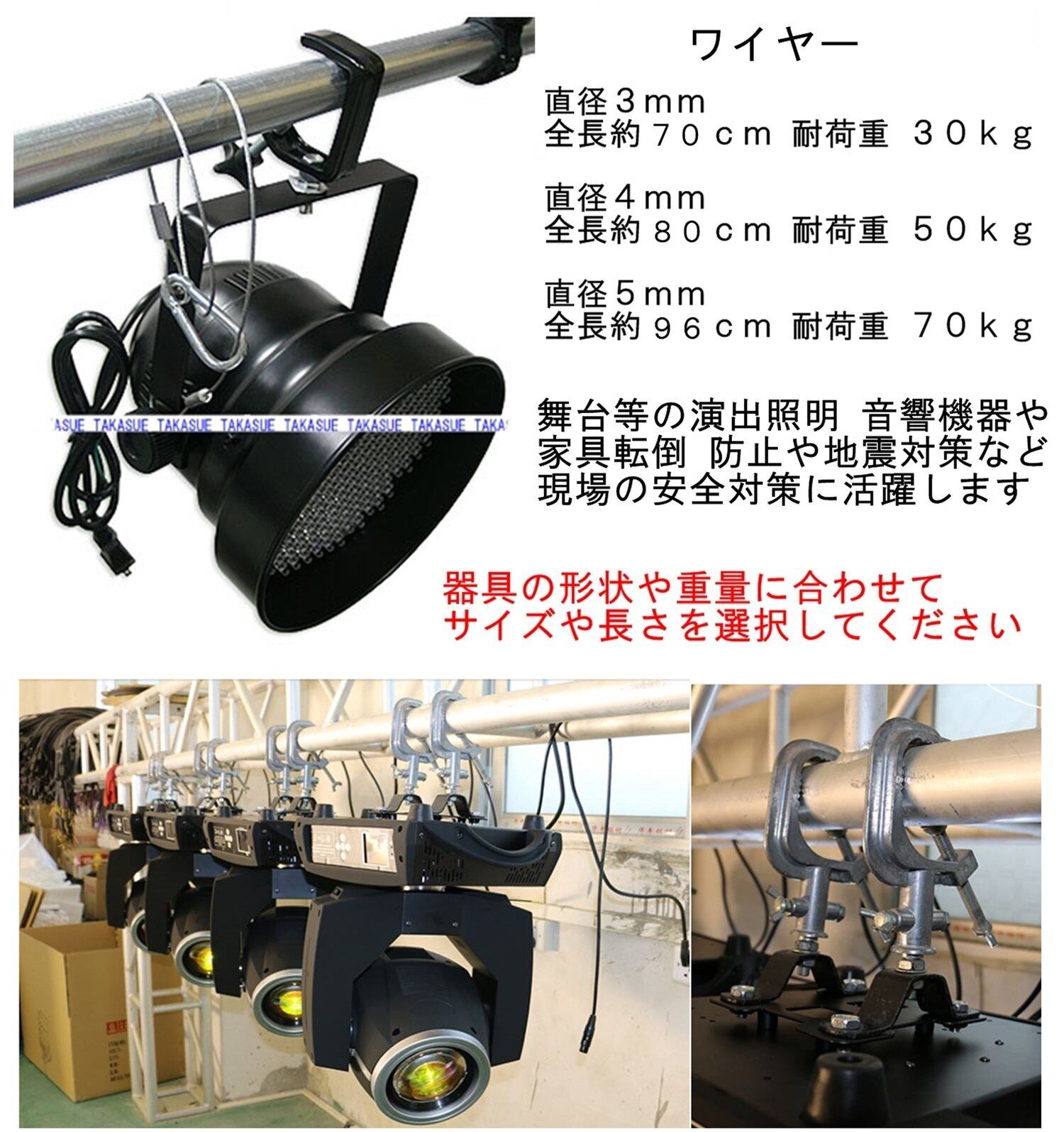 舞台やイベント会場での演出照明 音響機器などの落下防止に、家具転倒防止など地震対策にも人気でお勧めです。