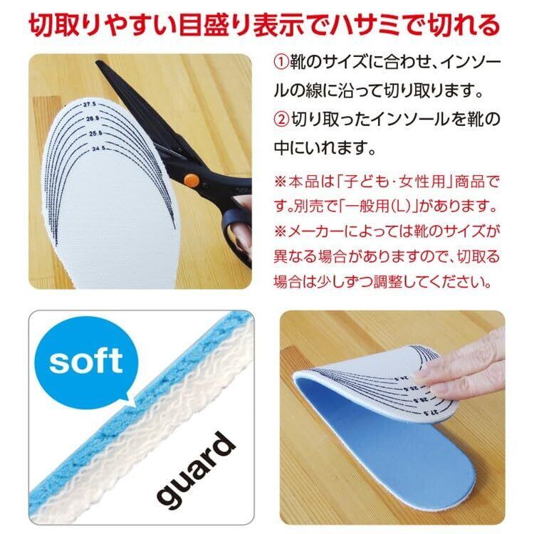 使用方法: 靴のサイズに合わせ、インソールの線に沿って切り取ります。 切り取ったインソールを靴の中に入れます。 ※メーカーによっては靴のサイズが異なる場合がありますので、少しずつ調整してください。