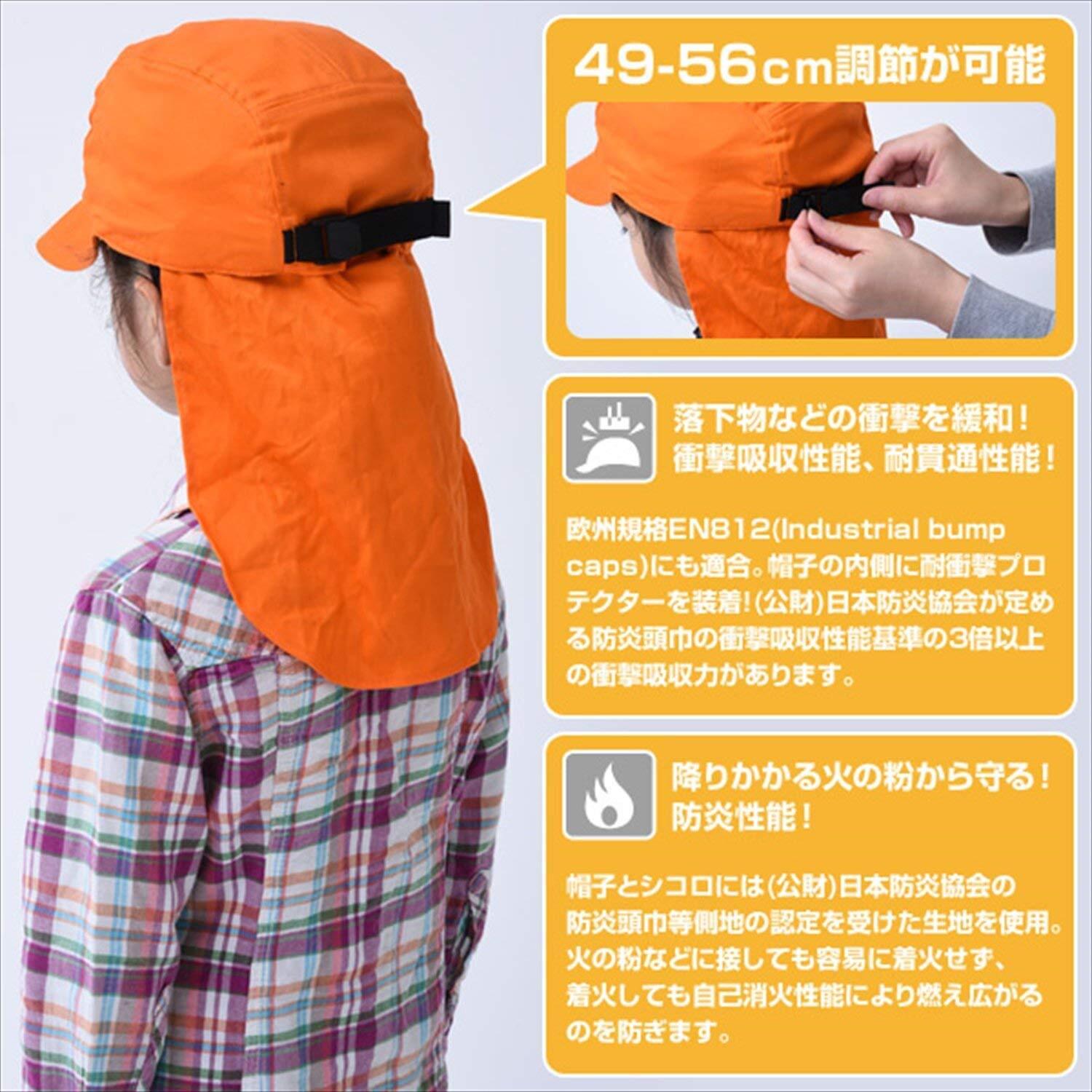 ●降りかかる火の粉から守る。防炎性能。帽子とシコロには(公財)日本防炎協会の防炎頭巾等側地の認定を受けた生地を使用。火の粉などに接しても容易に着火せず、着火しても自己消火性能により燃え広がるのを防ぐ