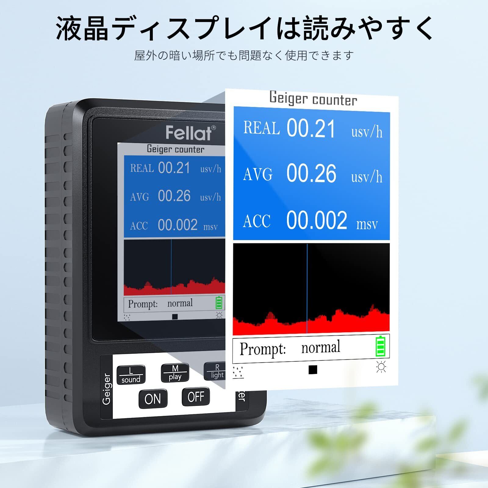 ️【高精度】高感度のエネルギー補償型ガイガーミュラー計数管(GM管)が内蔵されており、測定精度は0.01μSv/hに達し、誤差は10%(リアルタイム測定)と3%(平均値測定)で控えられています。