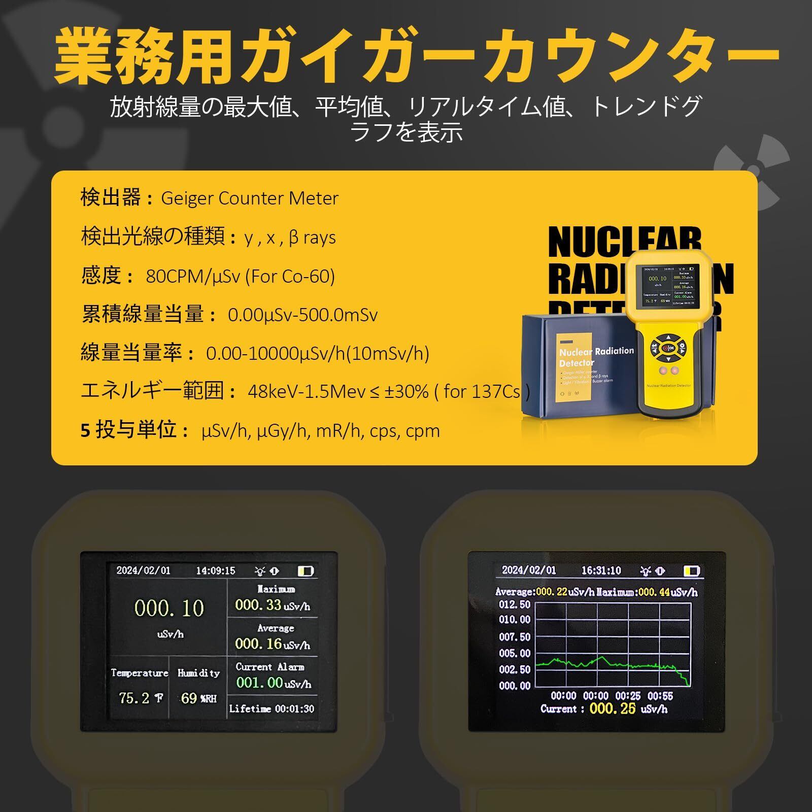 【 放射能測定器 5投与単位表示】 好みに応じて 5 つの線量単位 (μSv/h、μGy/h、MR/h、cpm を含む) から選択できます。トレンドグラフ機能により、放射線量の経時変化を直感的に視覚的に表示できるため、監視作業がより簡単かつ効率的に行えます。さらに、このデバイスは片手で簡単に操作できるように設計されています