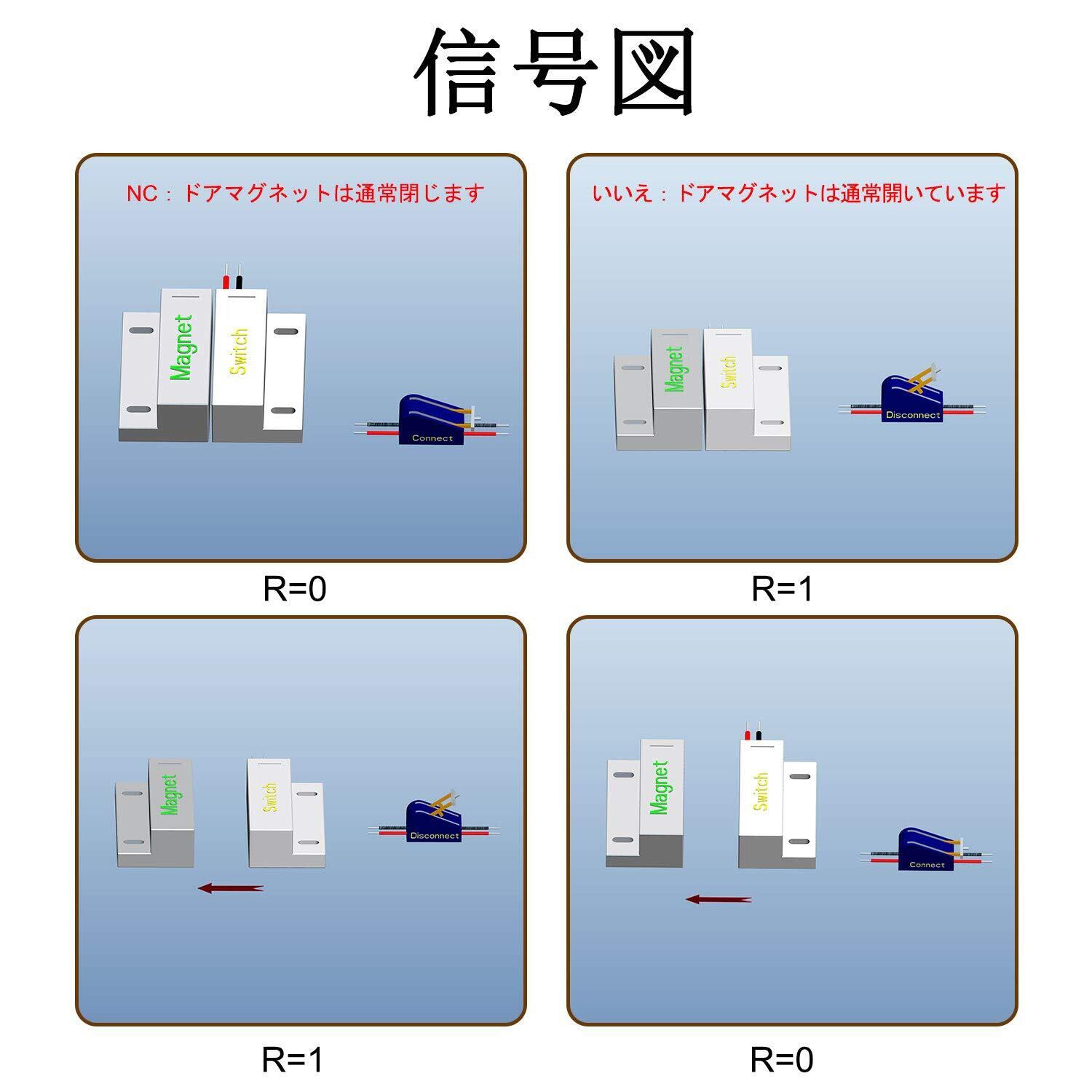 2:マグネット部分は可動扉と窓に取り付けられています。スイッチ部分は固定ドアと窓枠に取り付けられています。スイッチ部分と磁石部分は可能な限り位置合わせする必要があります。