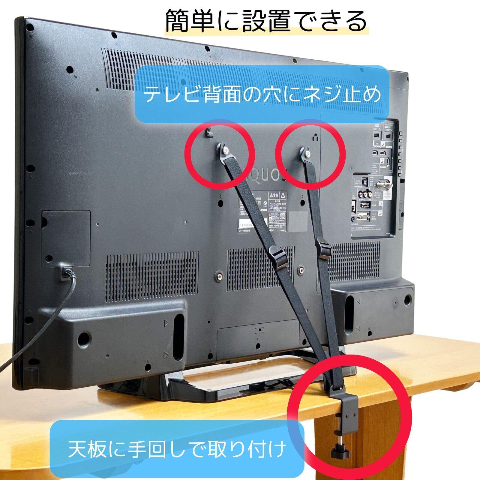 FORESIA テレビ転倒防止ベルト 震度7対応 耐震ベルト 防災士推薦 クランプ取付 VESA穴固定 ボルト4種類付属 穴あけ不要 TV地震対策 テレビ固定ベルト