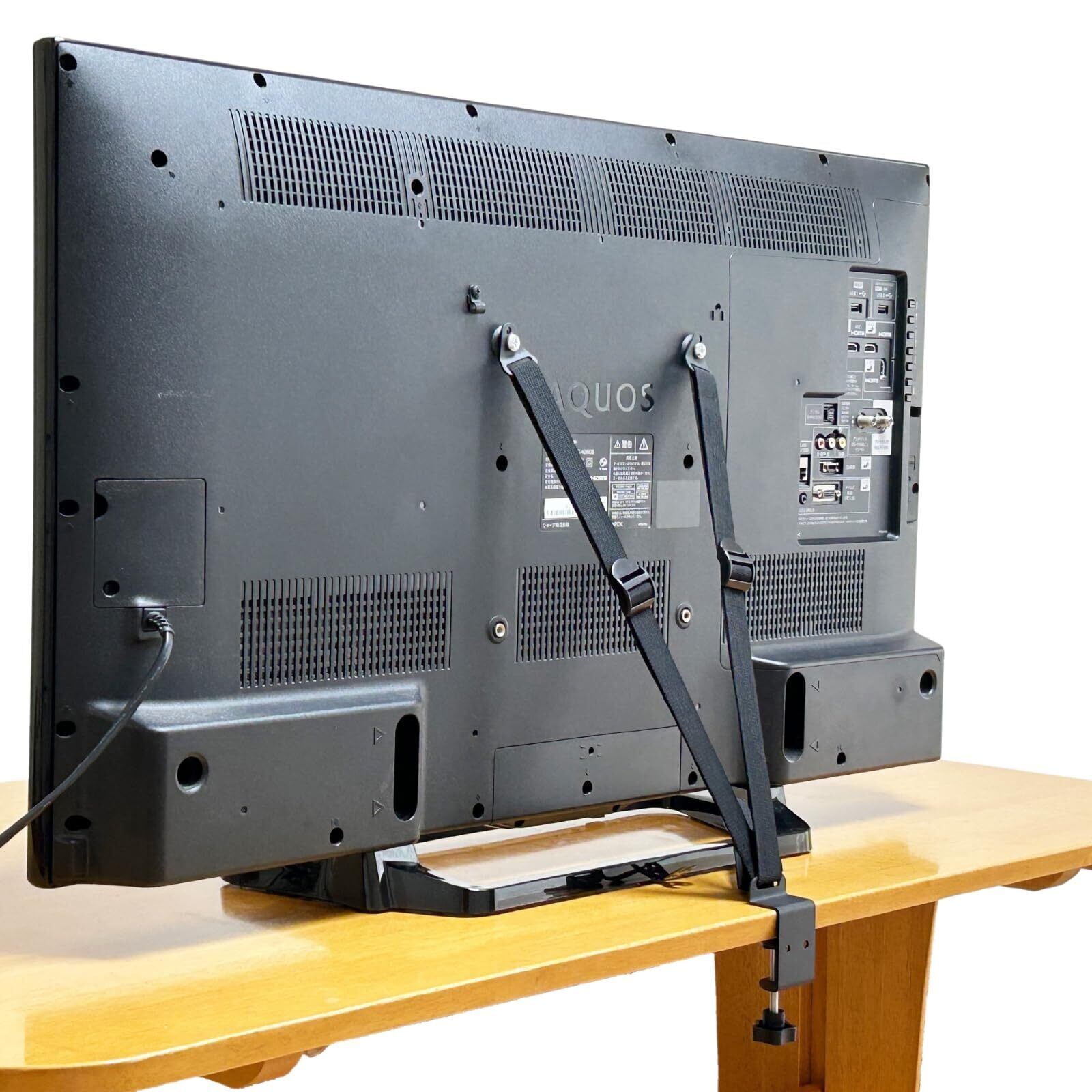 【特価セール】FORESIA テレビ転倒防止ベルト 震度7対応 耐震ベルト 防災士推薦 クランプ取付 VESA穴固定 ボルト4種類付属 穴あけ不要 TV地震対策 テレビ固定ベルト