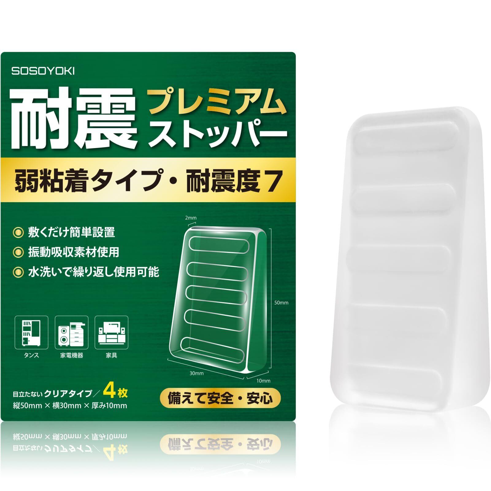 【在庫セール】SOSOYOKI 耐震ストッパー 弱粘着タイプ 耐震マット 耐震度7対応 地震 転倒防止 耐荷重200kg 振動吸収 粘着固定 繰り返し使用可能 強力滑り止めパッド 簡単取り付け (クリア4枚)