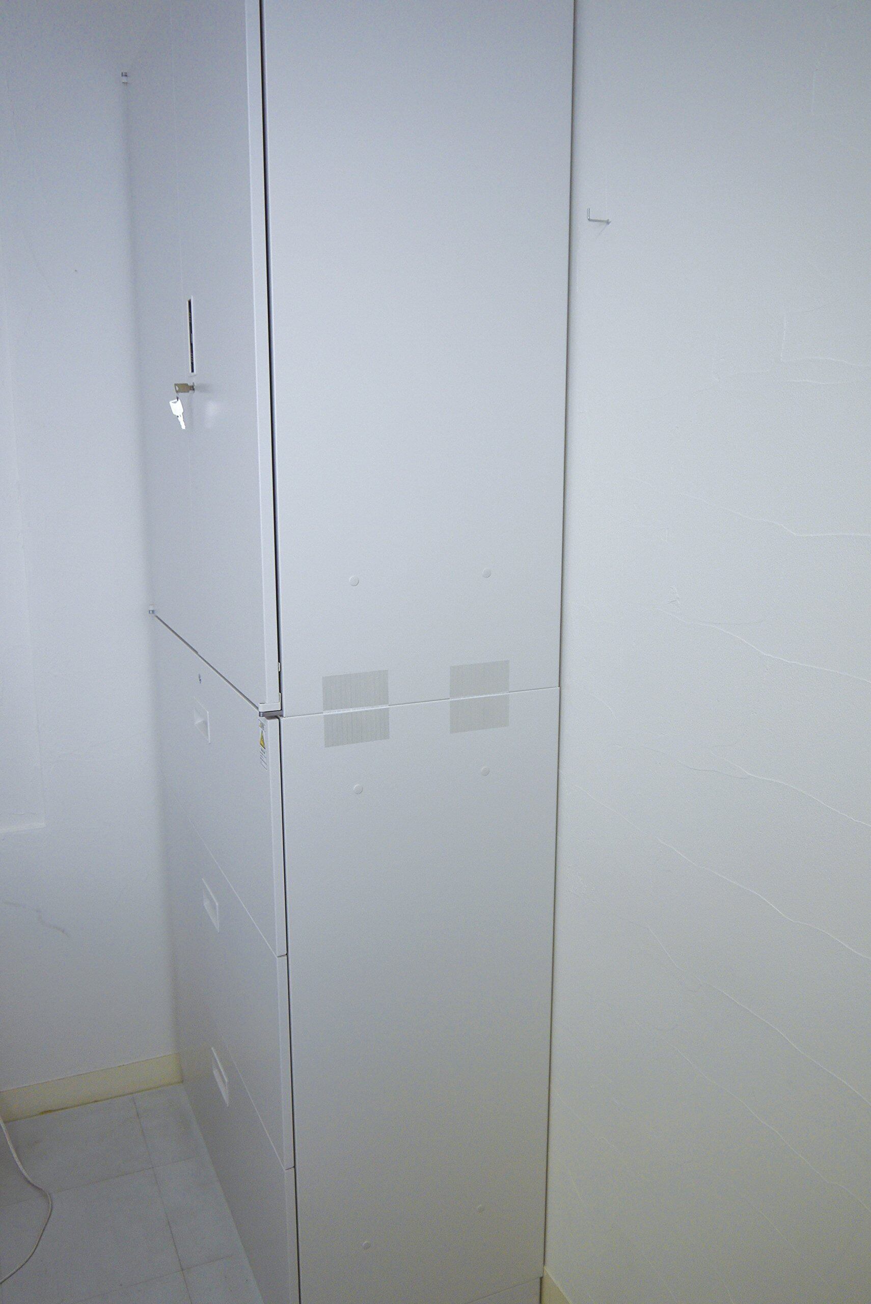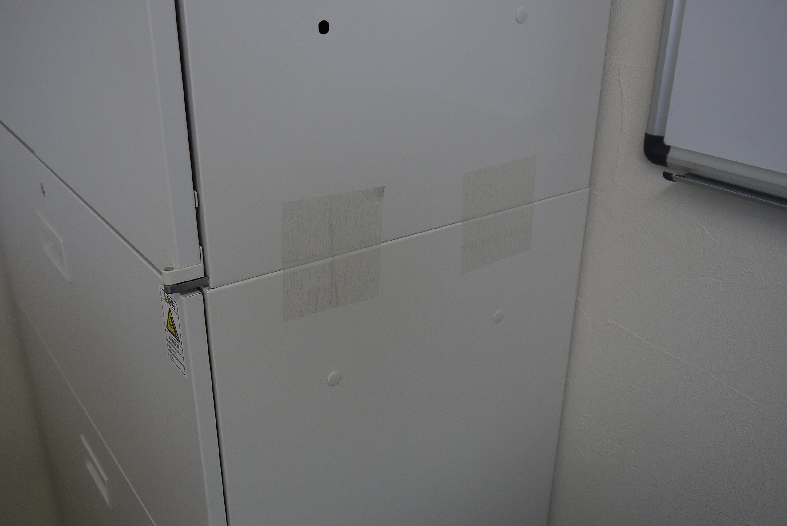 2段積みキャビネットの貼り、ズレを防止