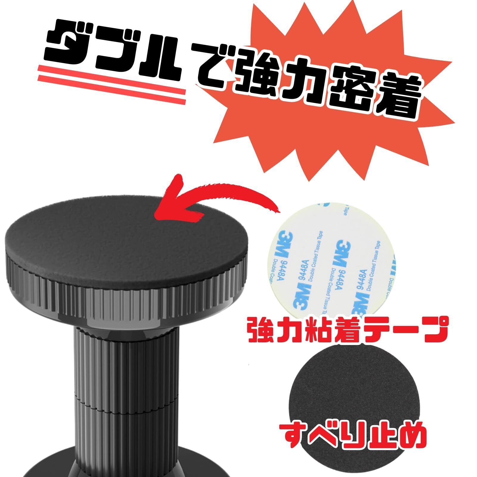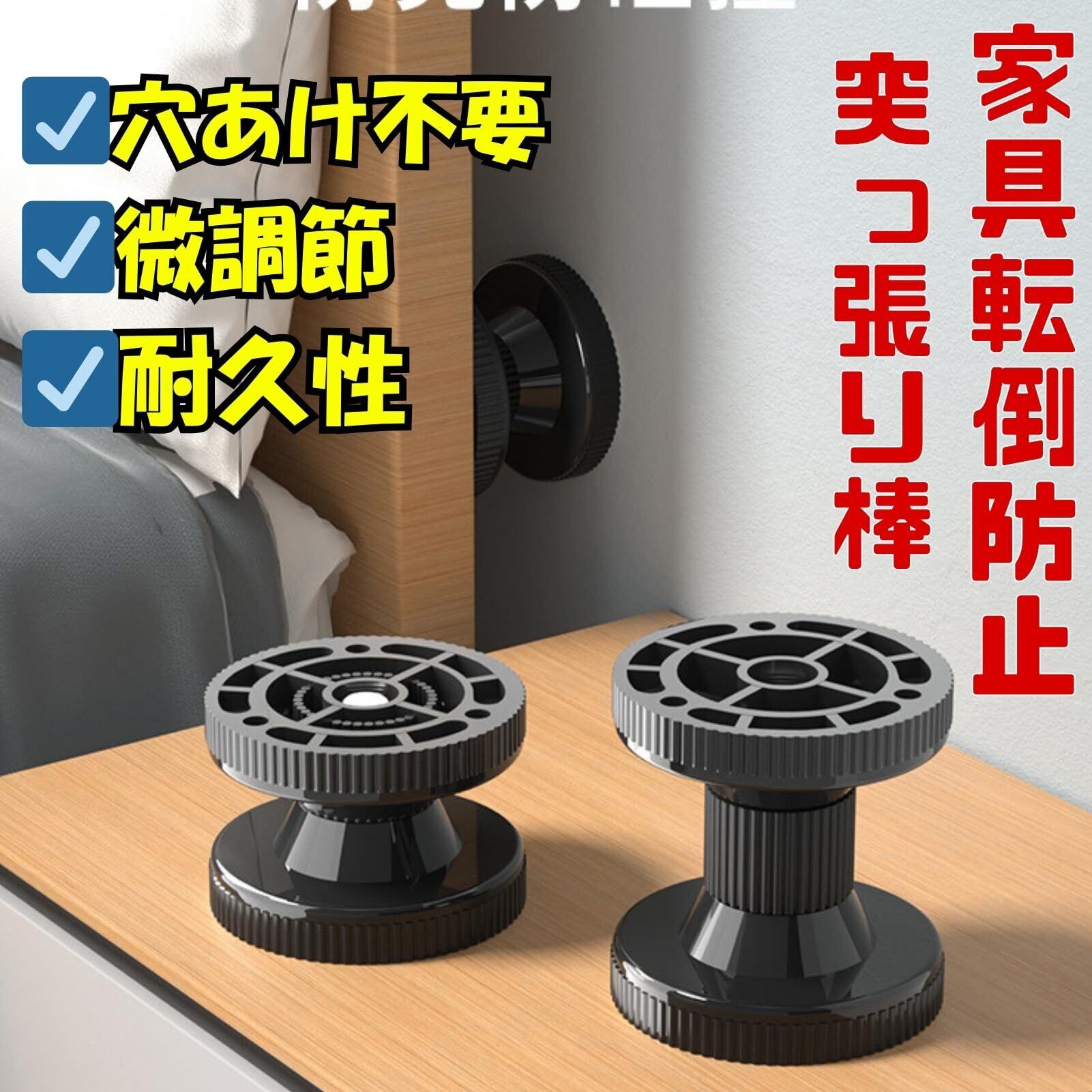パーツを回して微調整が可能で、天井と家具の隙間にぴったり収まる点が便利です。特に、床と天井の高さに合わせて調整できるのが好評です。パーツは太くて頑丈で、さらに強力な粘着テープ付き。