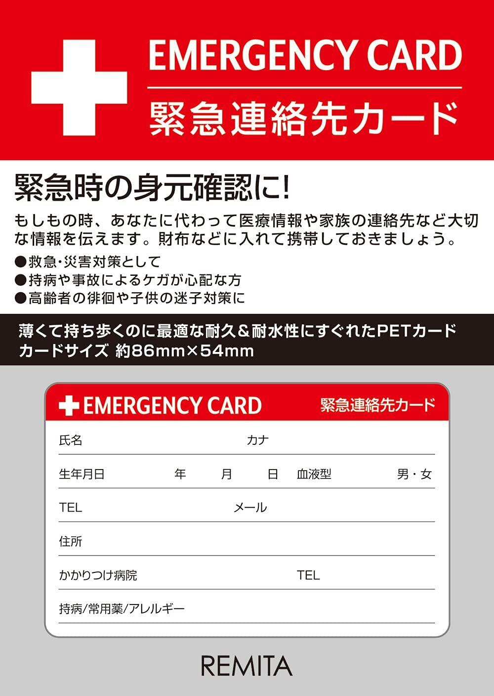 【数量限定】緊急連絡先カード 救急 防災 医療情報カード 耐水 10枚セット EC001