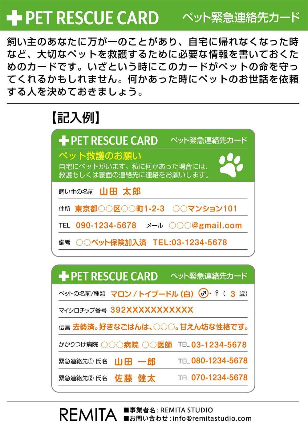 ペット緊急連絡先カード 救急 防災 耐水 10枚セット PRC001