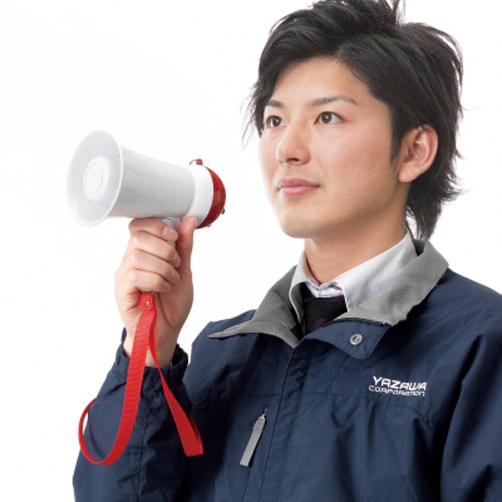 ヤザワコーポレーション YAZAWA ハンドメガホン ミニ 拡声器 折りたたみ 5W 誘導 サイレン ハンディ 到達距離約100m ホワイト Y01HM05WH