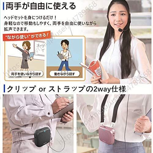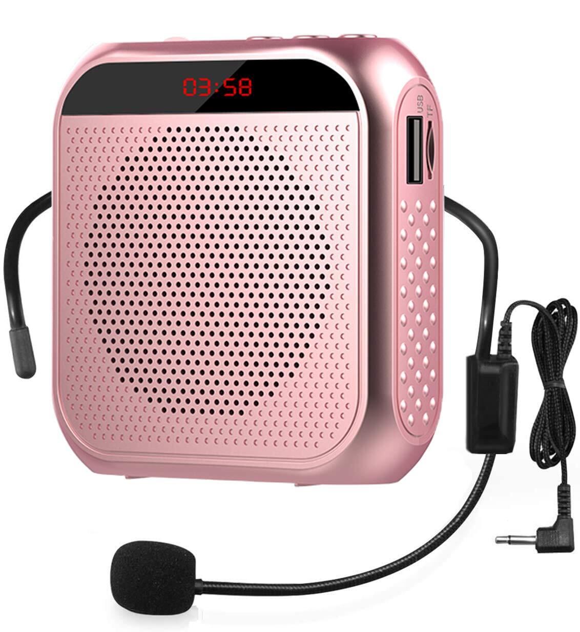 ポータブル 拡声器 ハンズフリー ヘッドセット マイク 付 スピーカー 音楽再生 USB microSD 対応 イベント·講演·説明会などに最適!! (ピンク)