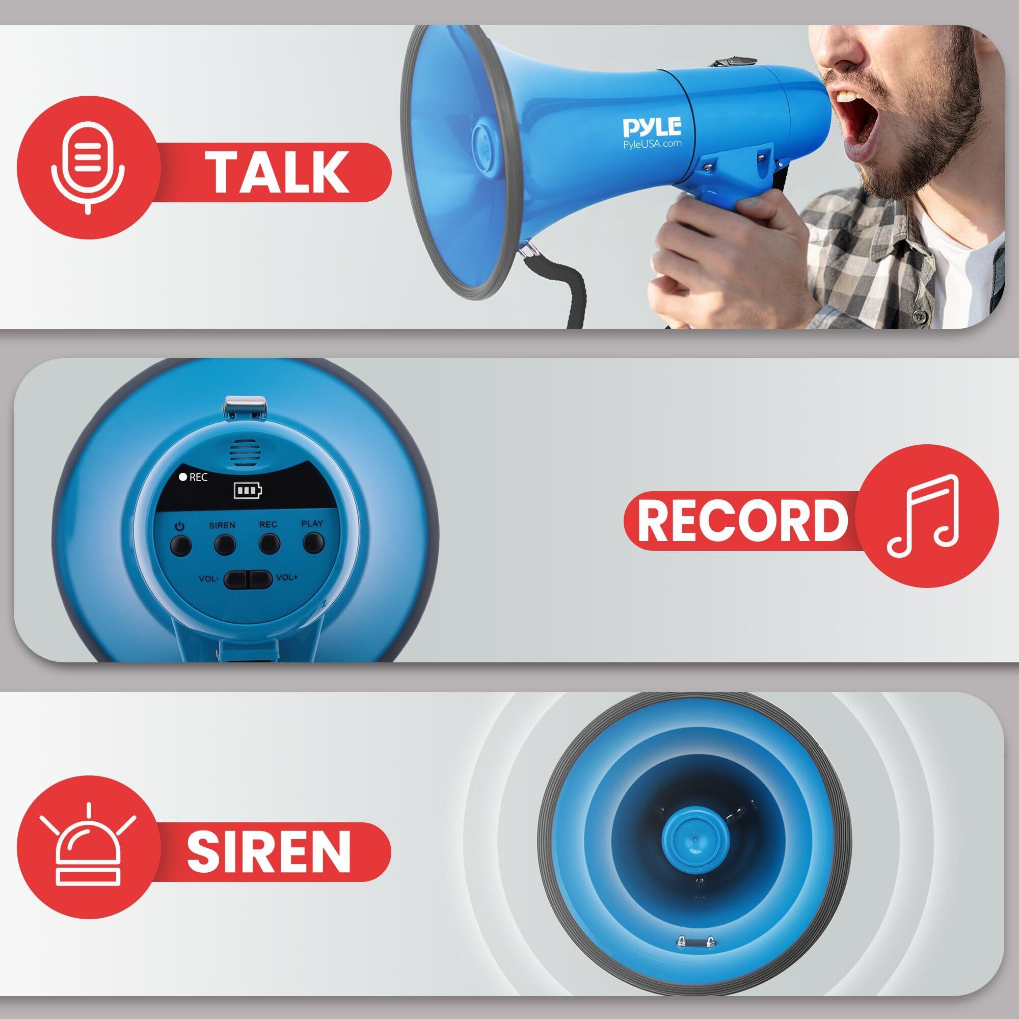 【新春セール】Pyle 40W メガホン 拡声器】731mまで音声が届く 重量890g 電池式 240秒間の録音機能付き 防水 雨の日でも安心 サイレン音機能 取り外し可能なマイクと携帯用ストラップ付き 折りたたみ式ハンドル AUX端子でスマホに繋いで音楽再生 【安心の6ヶ月間メーカー保証付き】PMP46WLT