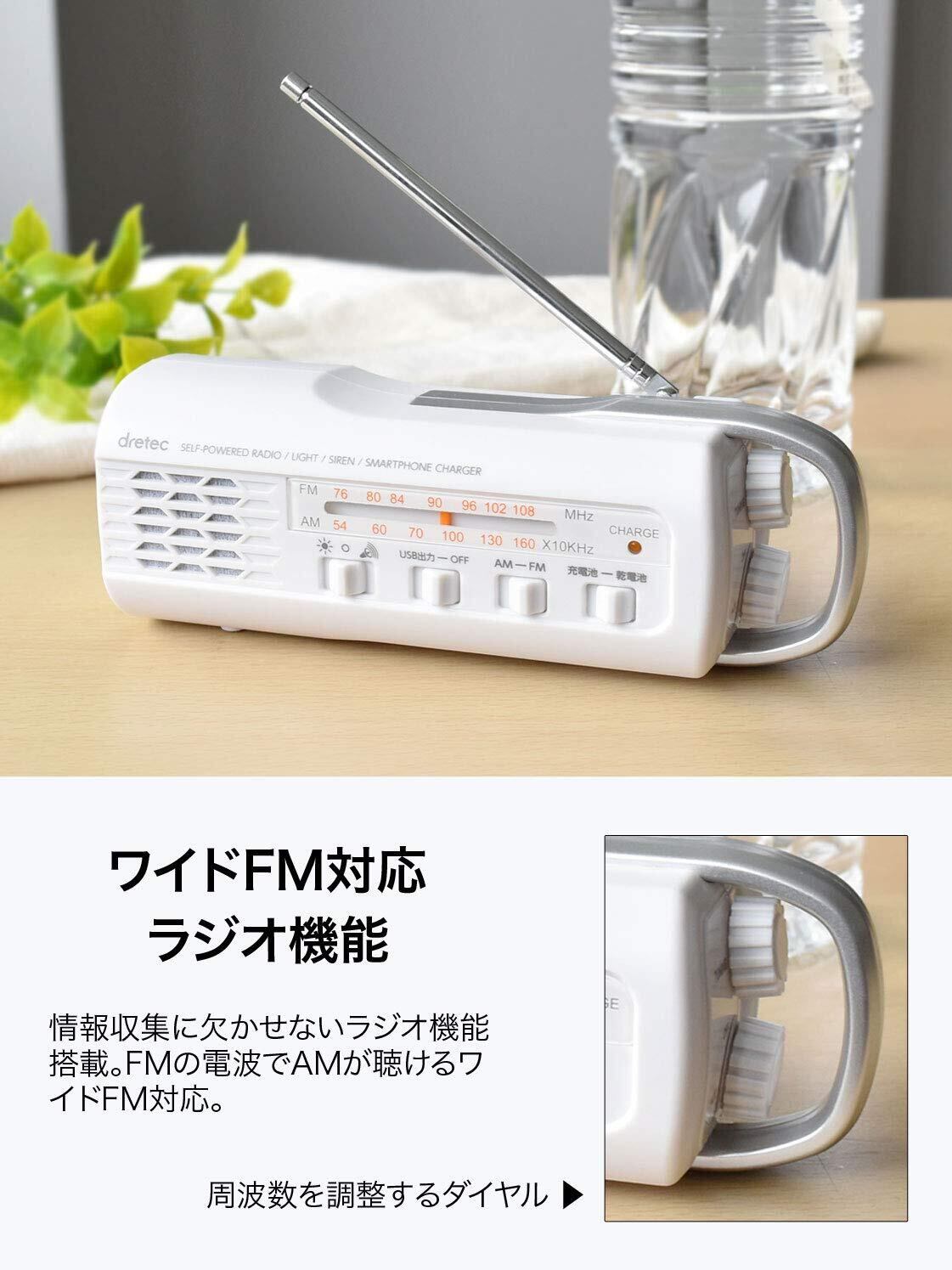 ドリテック(dretec) さすだけ充電 ラジオライト ホワイト PR-321WT