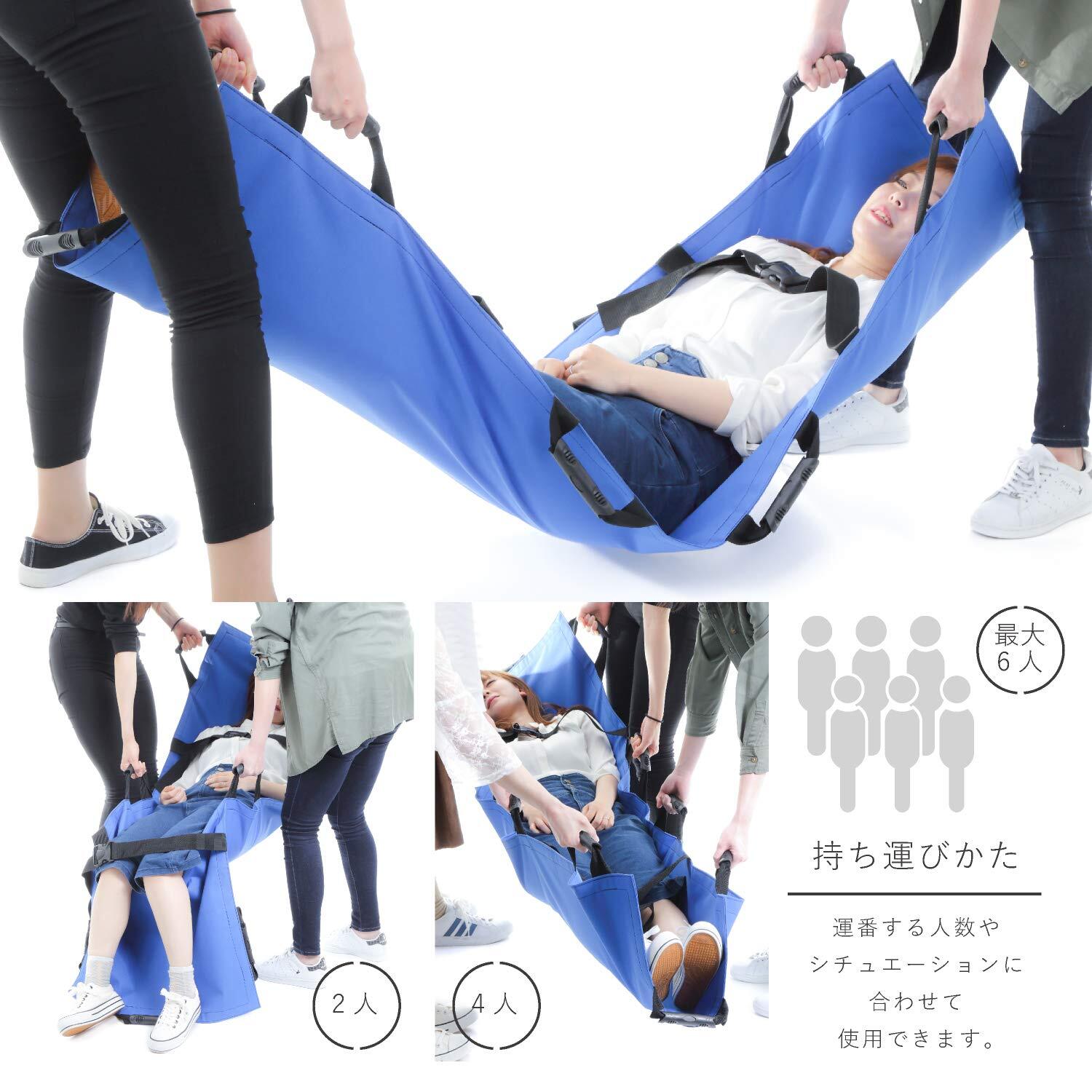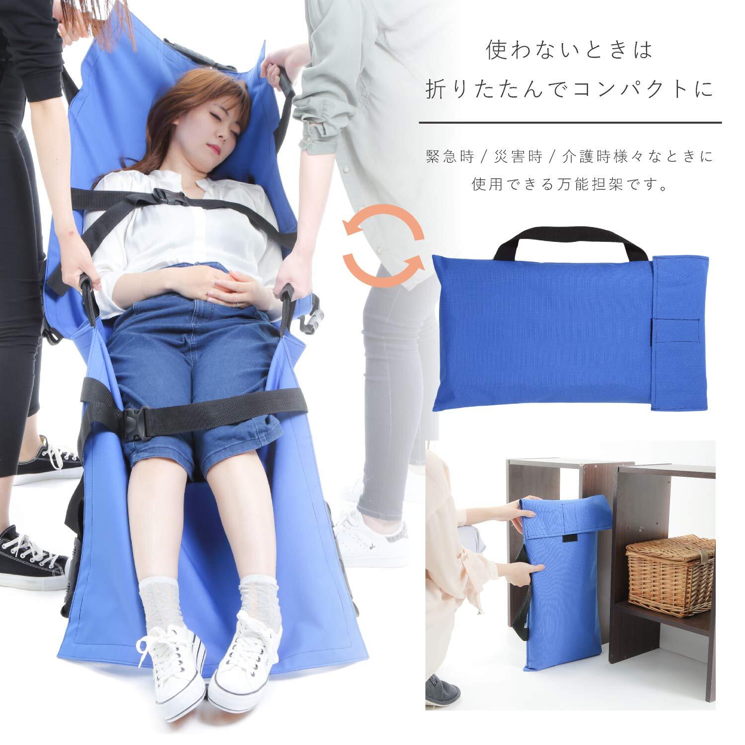 マルチ担架 担架 布担架 救急 救護 災害 防災 介護 緊急 患者移動用シート 180×70cm しっかりした持ち手 安全ベルト 収納袋付き (ブルー)