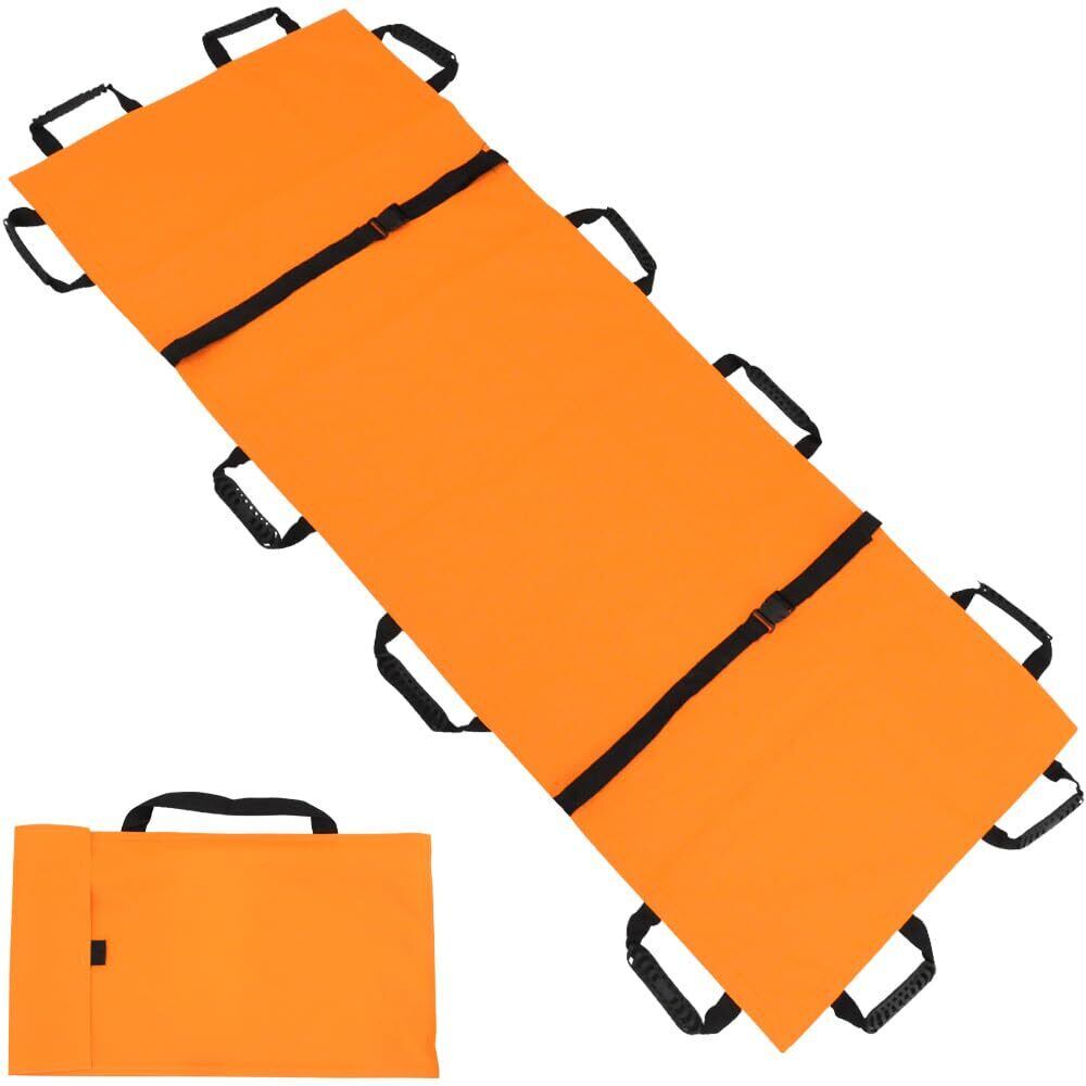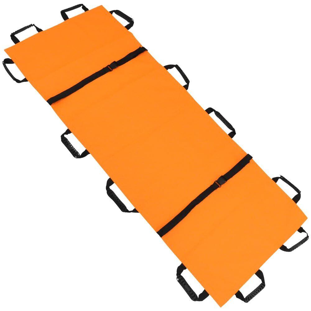iimono117 担架 折りたたみ 縦180×横70cm 耐荷重130㎏ 持ちやすい 安全ベルト 収納袋付き ストレッチャー 軽量 コンパクト 簡易担架 救急 救護 災害 防災 介助 緊急 介護 (1個, オレンジ)