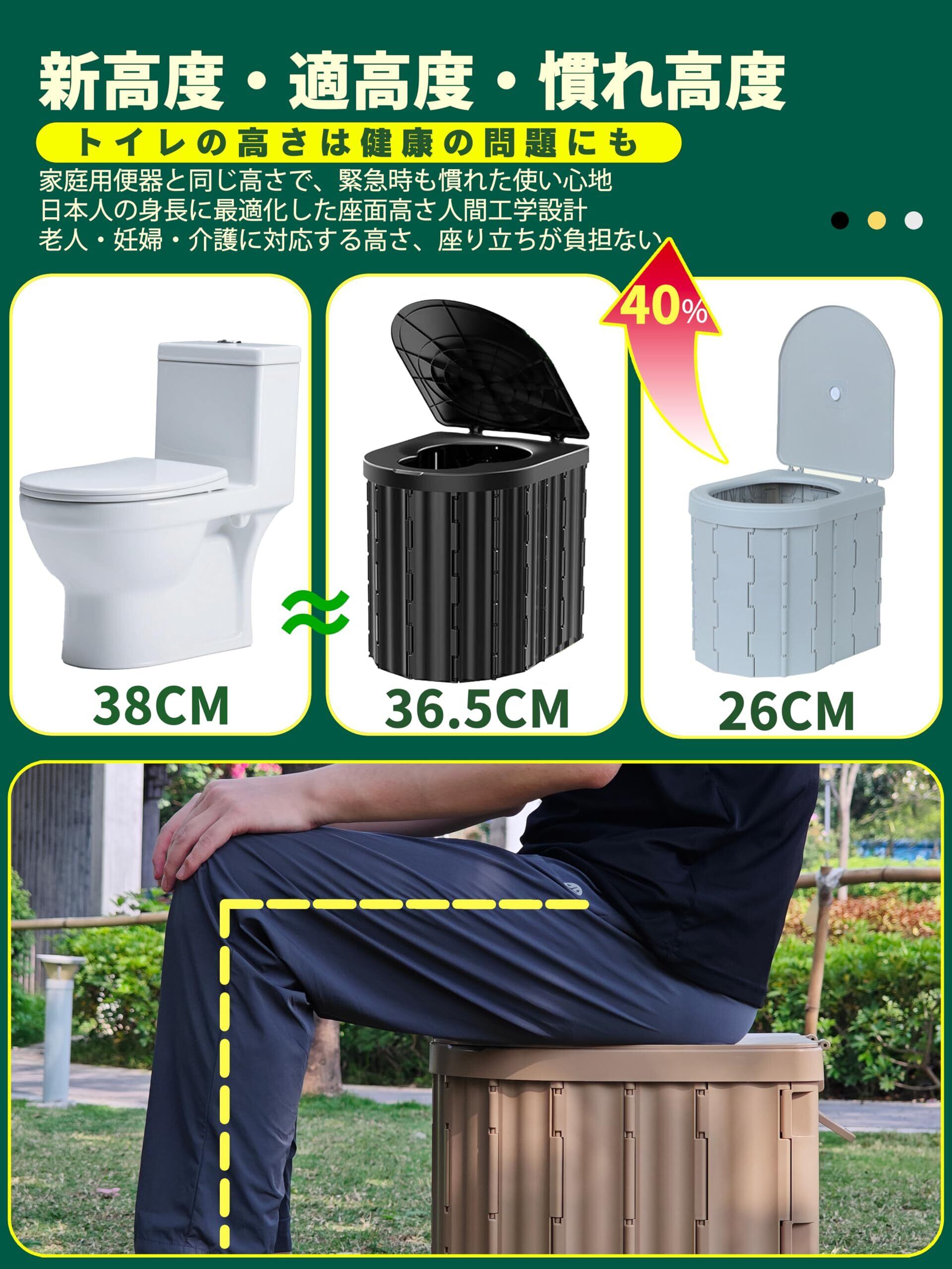 第4世代折畳式簡易トイレ:断水や災害時やアウトドアでも快適で安心できる防災グッズ。家庭用トイレと同じ高さで、長時間座っても疲れない座面と、頑丈な曲面デザインの側板で耐荷重2倍に強化、静かで安定感抜群です。従来の「座りにくさ」「重さに弱い」「ガタつく」「お尻が痛い」「ヒビしやすい」「割れしやすい」といった悩みを全て解消!