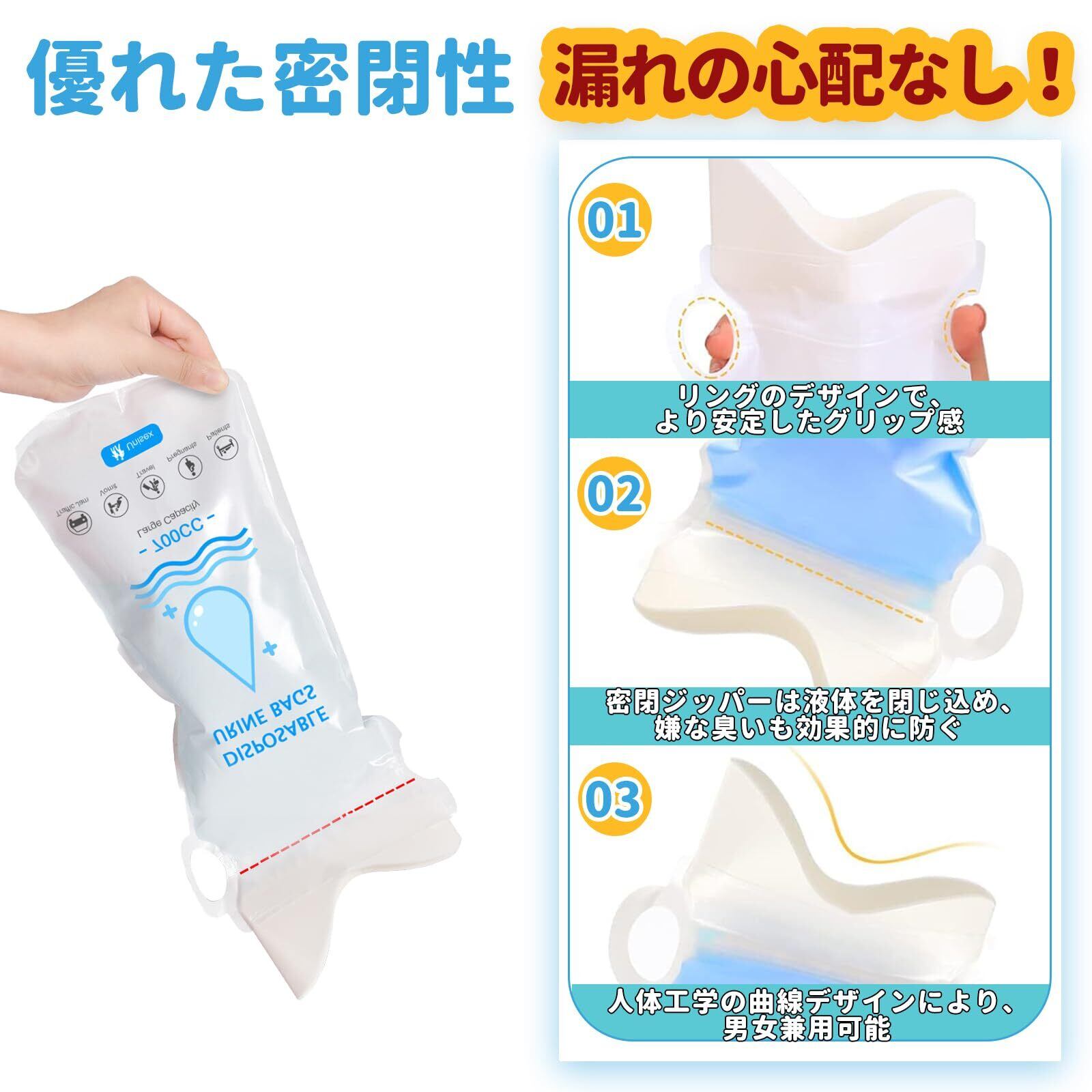 【大容量・携帯便利】使い捨て携帯トイレの容量が大きくて、700mlがあります(成人1回の尿は200-300mlです)。また、サイズが小さくて、コンパクトなデザインで場所を取らない、車のサイドポケットやポケット、財布やバックパックにも収納しやすく、いつでも簡単トイレのニーズを解決でき、便利で安心です。