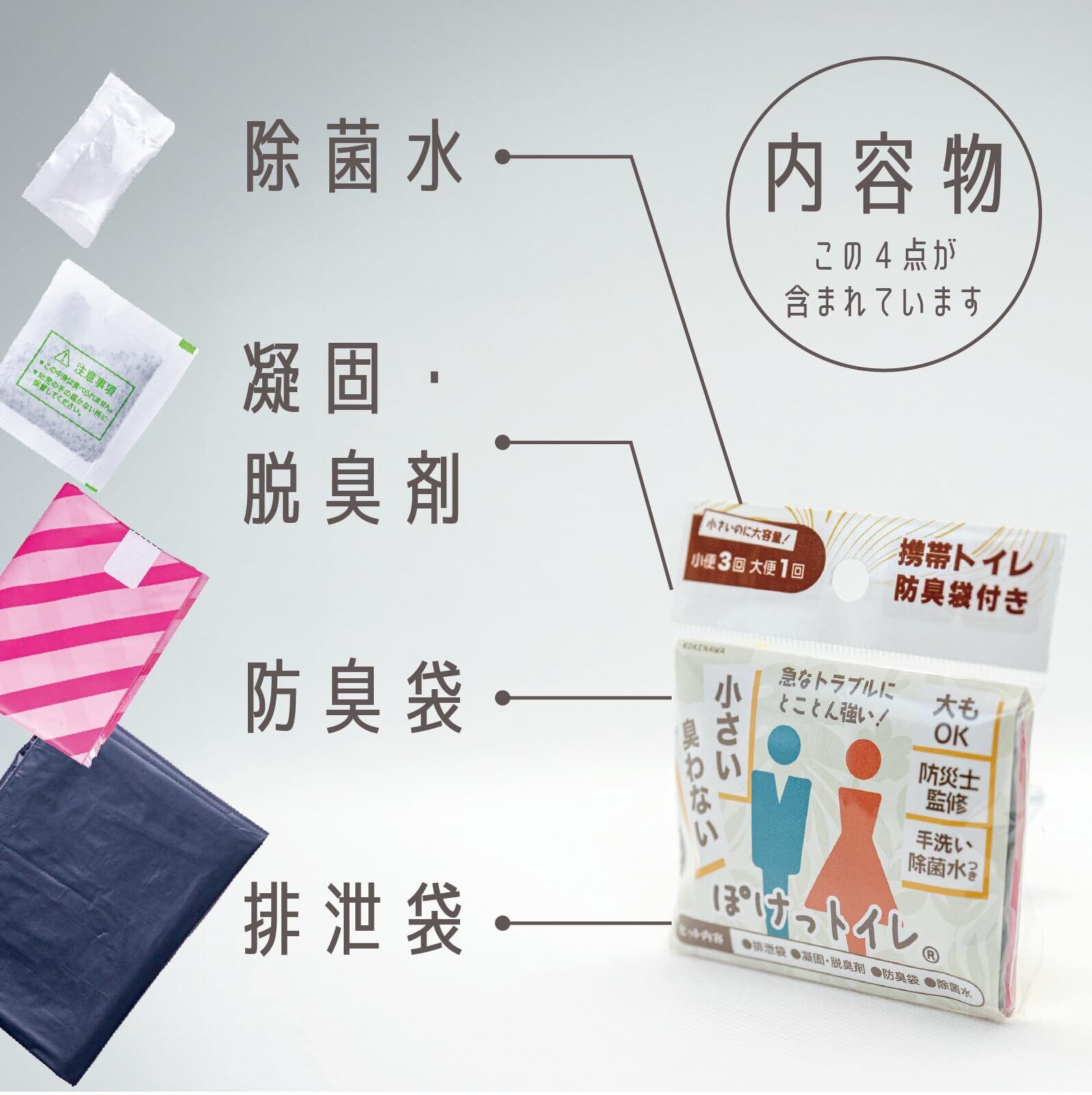 【防災グッズ大賞2024受賞】 ぽけっトイレ 3個 【世界最小クラス】 携帯 簡易 防災士監修 凝固・脱臭剤 大容量排泄袋 防臭袋 除菌水 釣り キャンプ ハイキング ドライブ 渋滞 介護