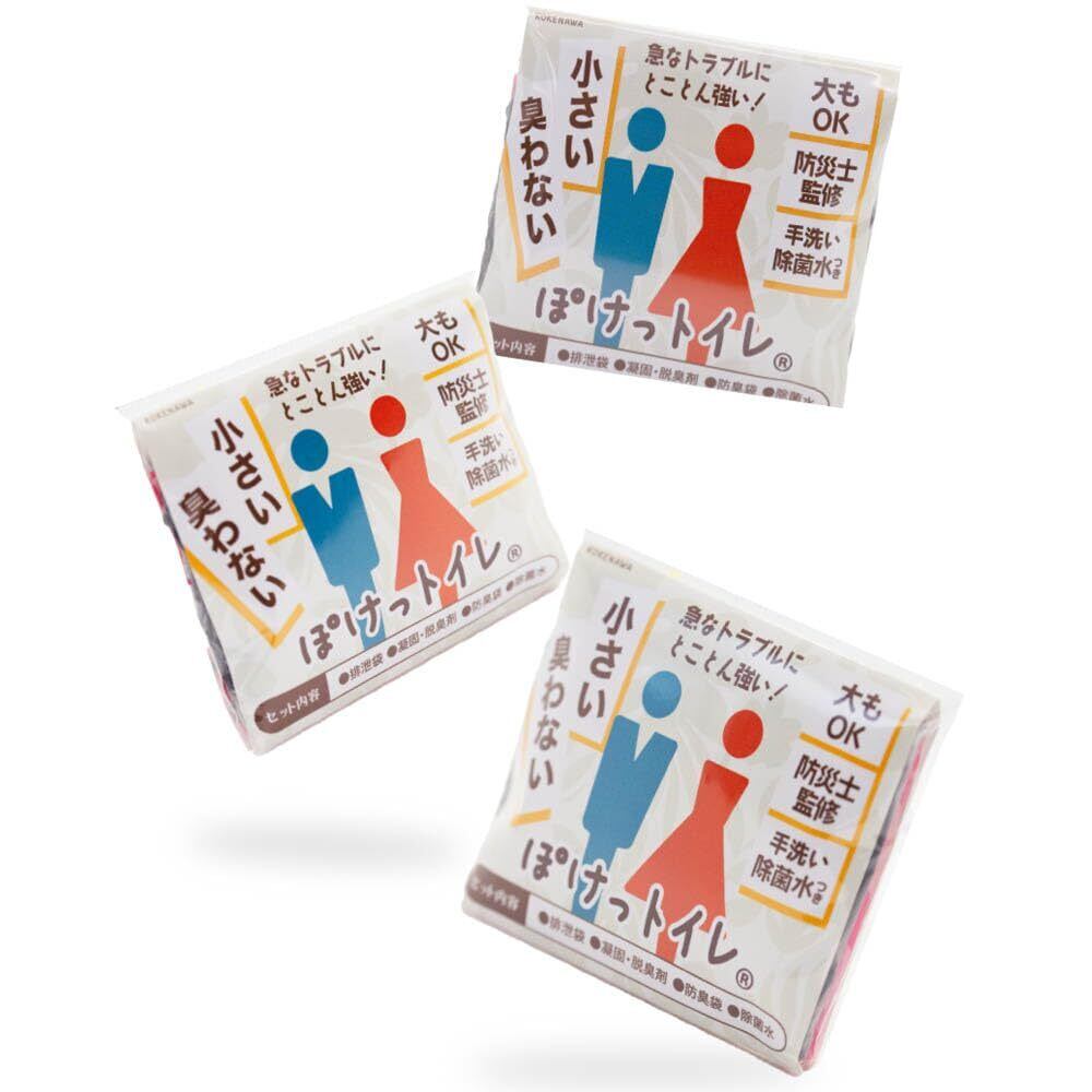 【在庫セール】【防災グッズ大賞2024受賞】 ぽけっトイレ 3個 【世界最小クラス】 携帯 簡易 防災士監修 凝固・脱臭剤 大容量排泄袋 防臭袋 除菌水 釣り キャンプ ハイキング ドライブ 渋滞 介護