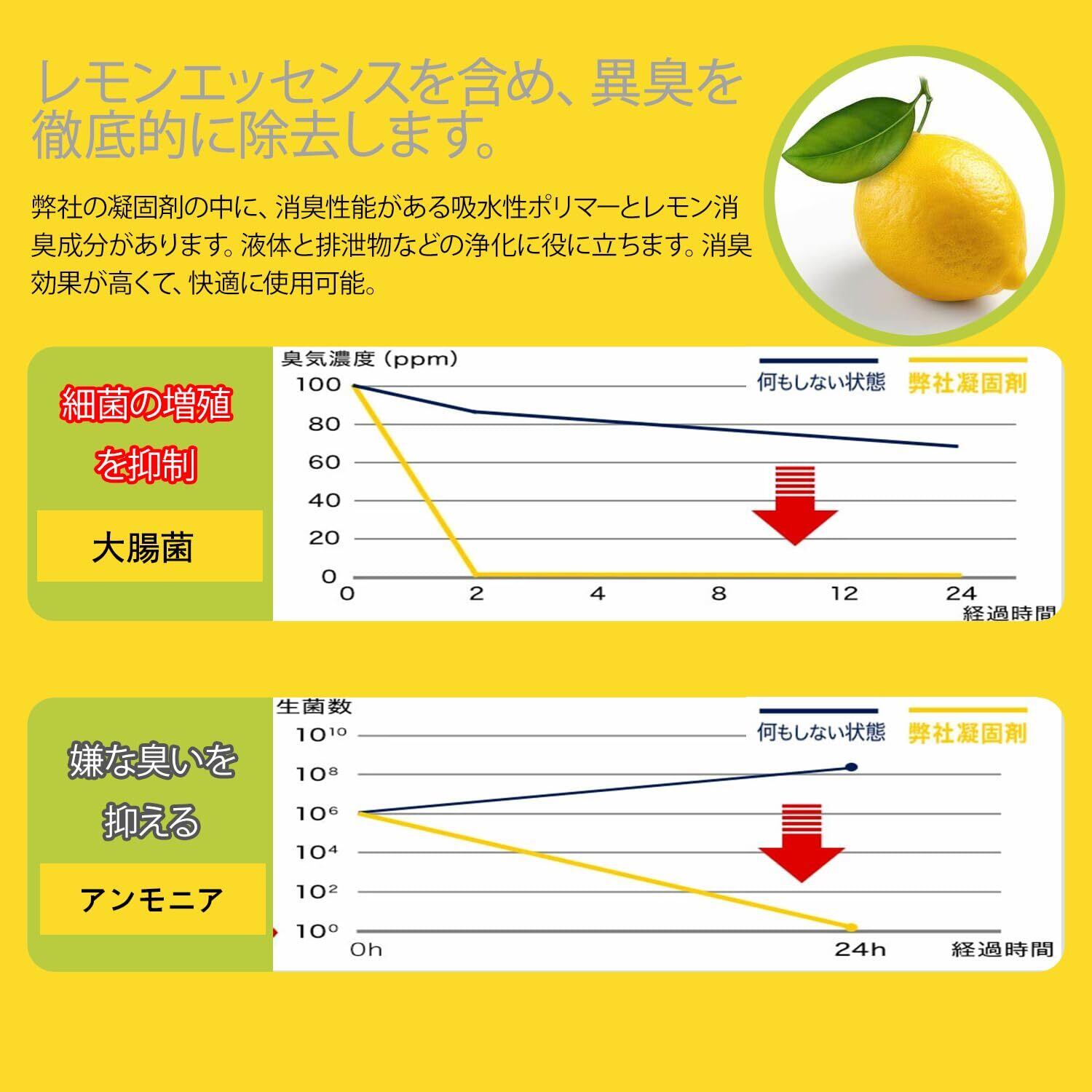 【優れた抗菌と消臭性能】凝固剤は抗菌の性能があり、感染を引き起こす大腸菌と黄色ブドウ球菌の繁殖を防げます。本製品は豊富なレモン香りの消臭成分があり、液体と排泄物を浄化でき、強い防臭効果があります。緊急状況での心理圧力を減少でき、快適な使用環境を提供可能。