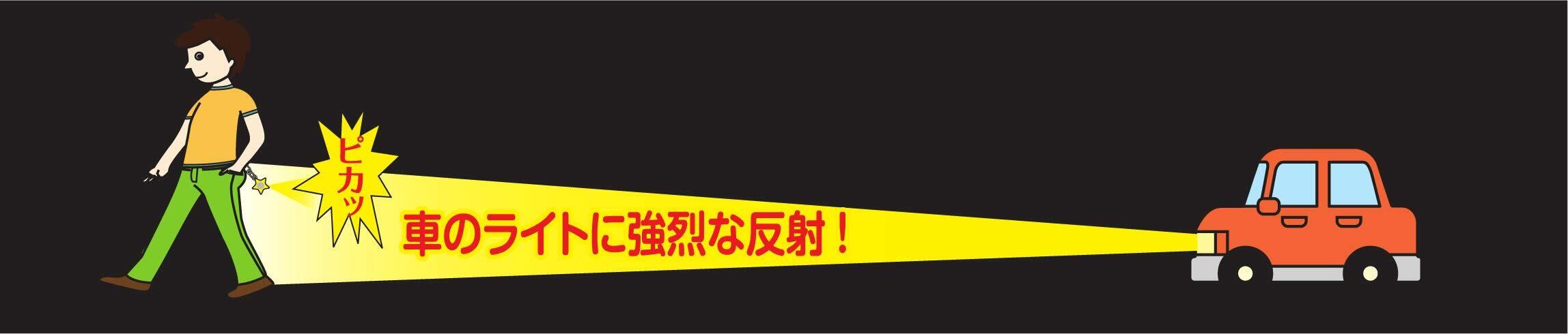 反射:夜間、薄暗時に、車のライトに約60m手前から強烈に反射してドライバーにあなたの存在を知らせます。