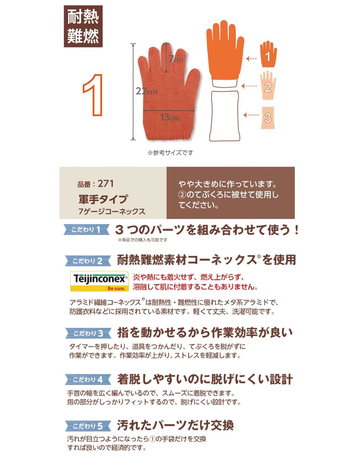 アウター用手袋。耐熱温度:350℃