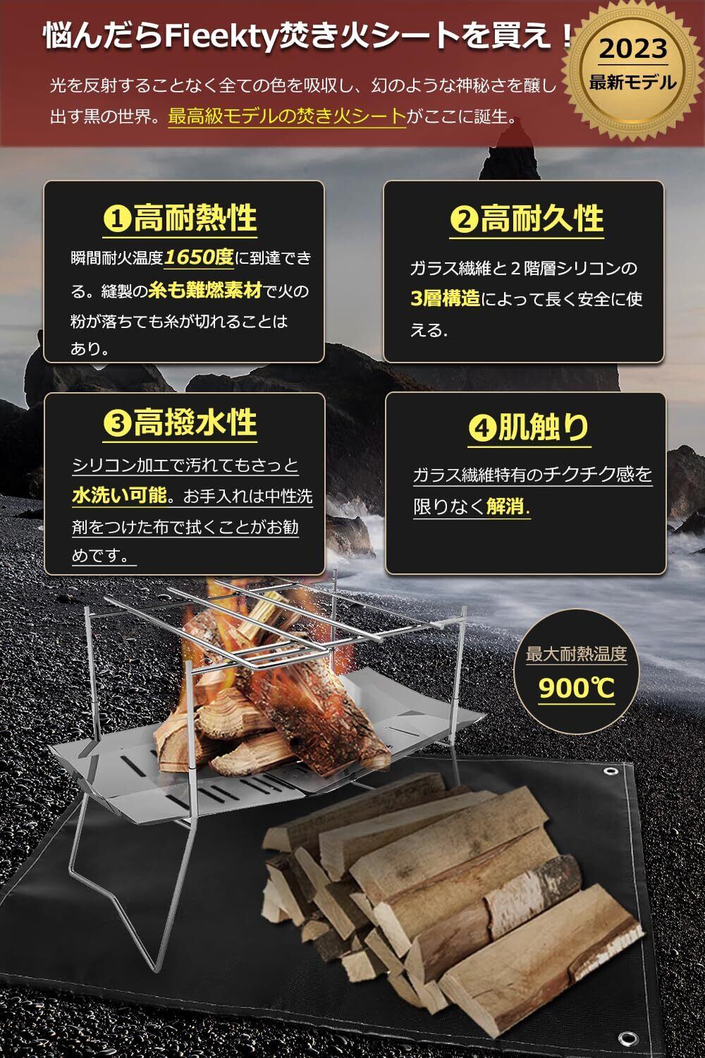 【 焚き火シート・新品誕生 】 使用寸法:61cm×50cm。お待たせいたしました! Fieekty焚き火シートブラック誕生!光を反射することなく全ての色を吸収し、幻のような神秘さを醸し出す黒の世界。