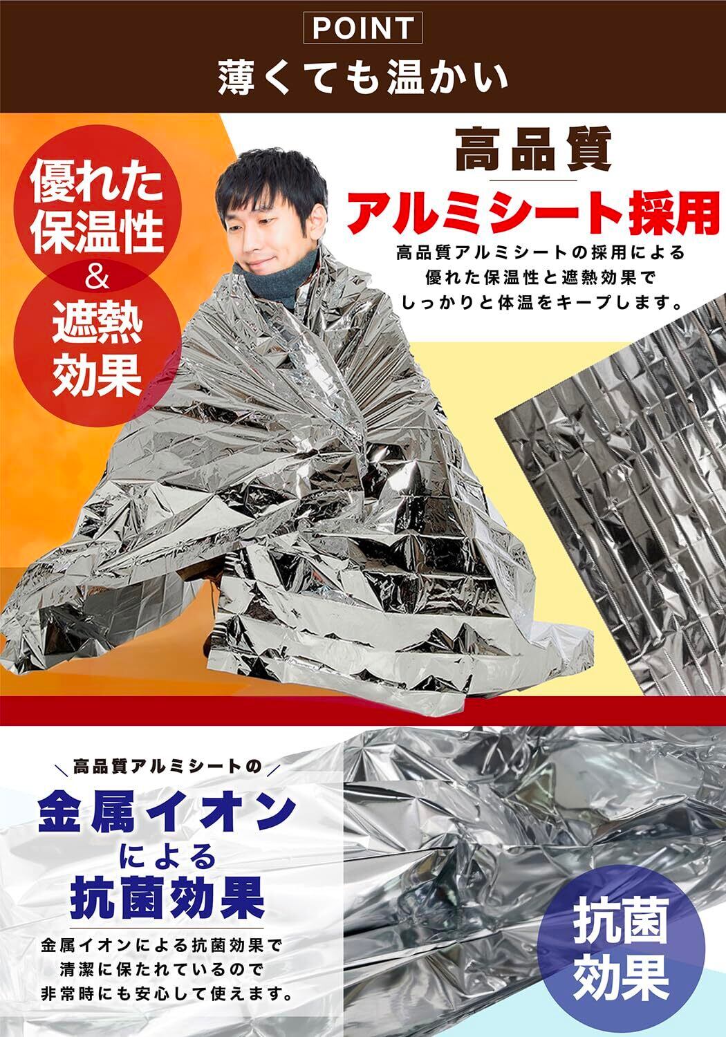 【緊急時のヒーロー!頼れる1枚】 持っているだけで安心感抜群!体温保持・遮熱・プライバシー保護まで、この1枚で多用途に活躍。非常時に家族や仲間を守る、信頼できるサポートアイテムです!