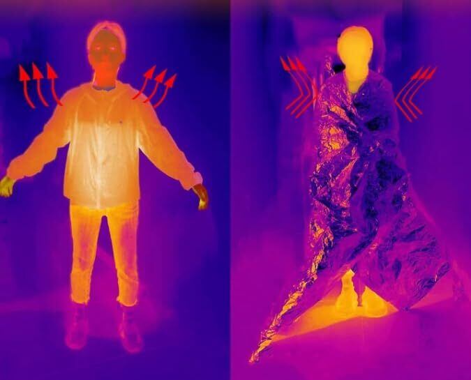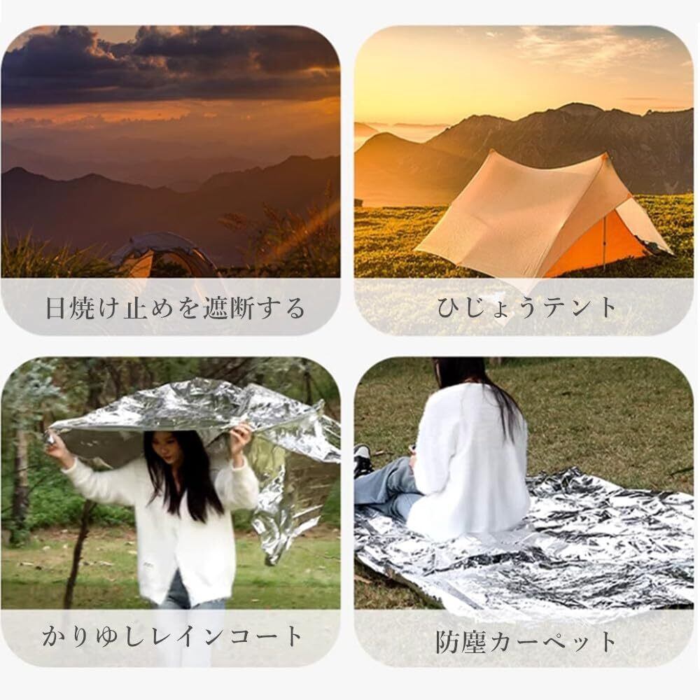 二枚ともアルミシートで、緊急時、保温、断熱の機能が備わっております。4層の厚手スペースシートもアウトドアブランケットとして、寝袋や布団の下に敷いて底冷え対策に、薄手アルミブランケットは防寒・保温ができ災害時や緊急時の必需品です。