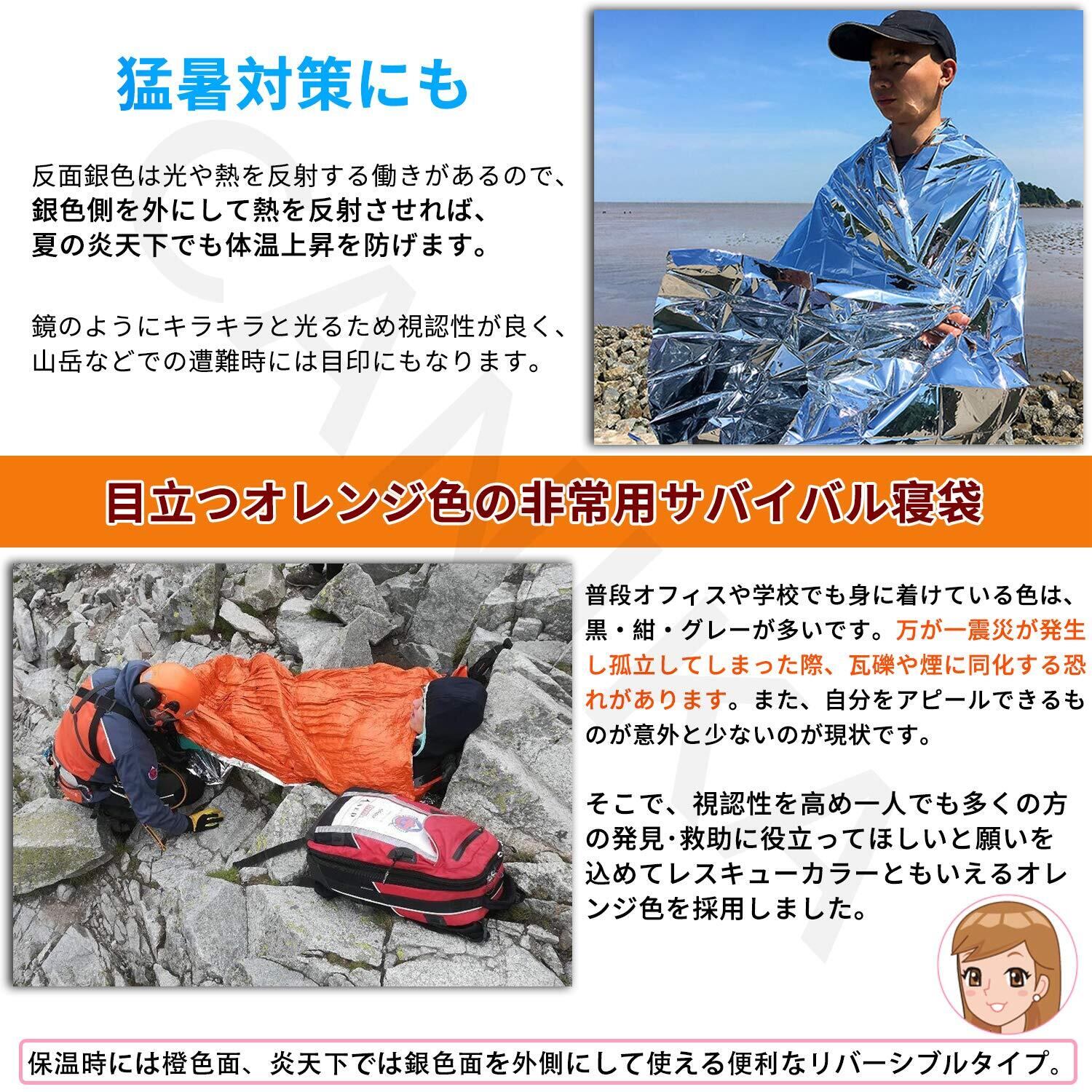 エマージェンシー ブランケット ヒートシート サバイバル 寝袋 セット 地震 防災 保温 防寒 シート 封筒型2枚+布状1枚 車中泊 避難用 CANIKA