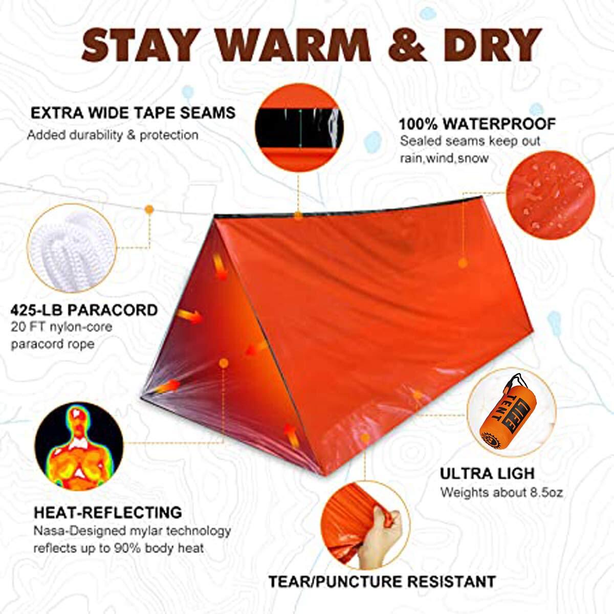 【軽量&携帯便利】手のひらサイズに収納でき、スリムで、取付安いし、持ち運びも簡単です。このエマージェンシーテントも折り畳みにも自由です。簡単にバッグとポケットに入れて、負担がなくて、非常に便利です。車の中やご自宅に常備していただけます。