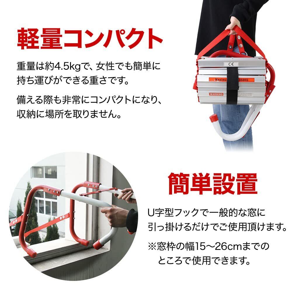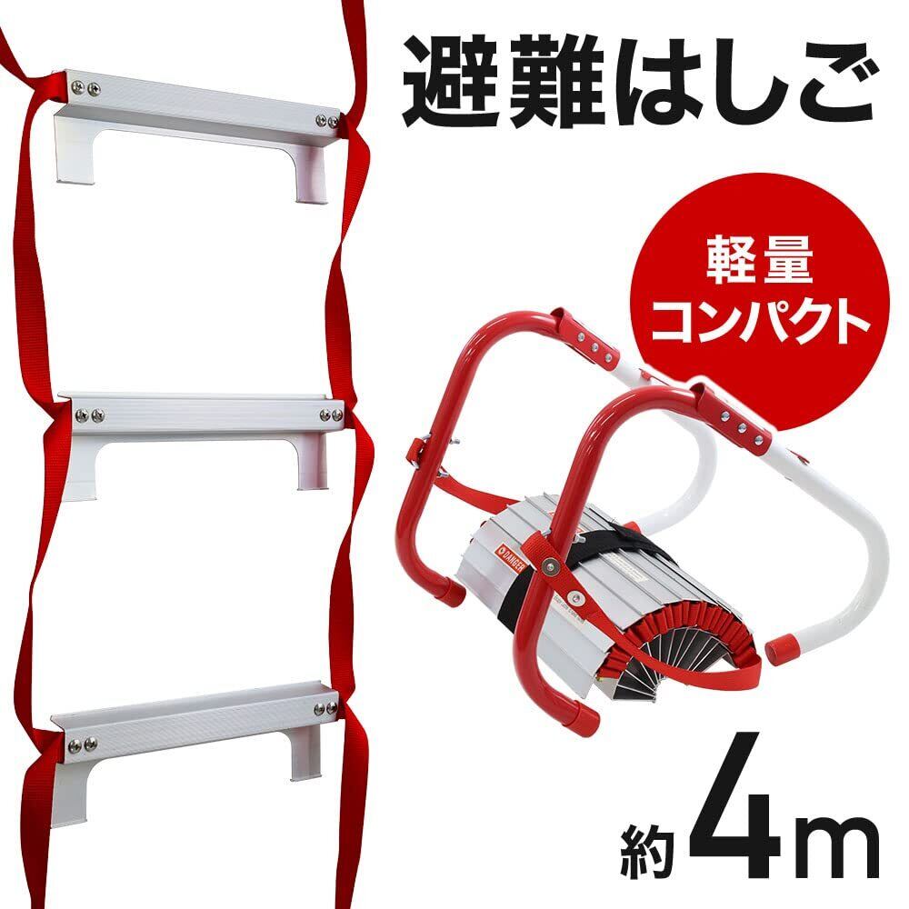 【2022最新】UPstore 防災はしご 避難用はしご 4M 2階用 脱出用 緊急時 アルミステップ ベランダ 軽量4.5kg コンパクト収納 折りたたみラダー 引っ掛けはしご (4m / 2階用)