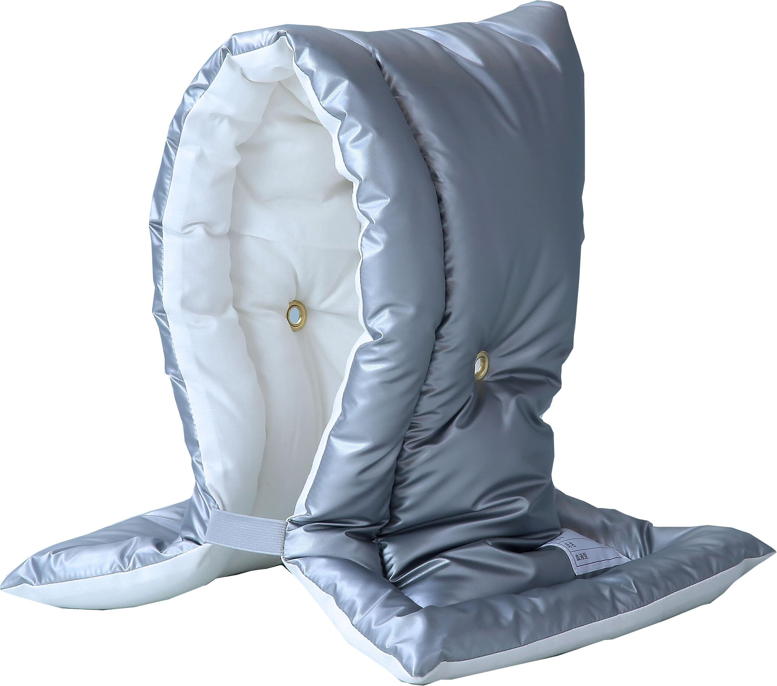 両面には防炎クッションを頭にかぶった時に音がよく聞こえるよう、耳穴があいています。