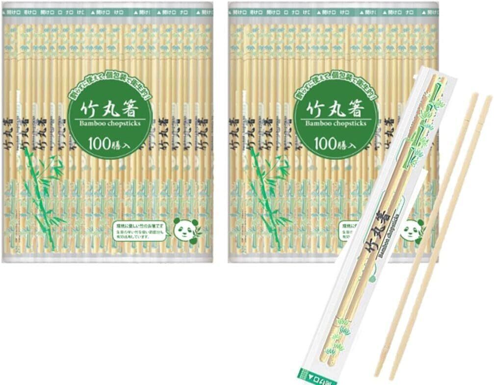 竹丸箸 OP完封箸 割り箸 200膳 20㎝ 個包装 袋入り 割りばし わりばし 業務用エコ 大量 使い捨て 100本入り ×2個セット (100膳入り×2個セット)