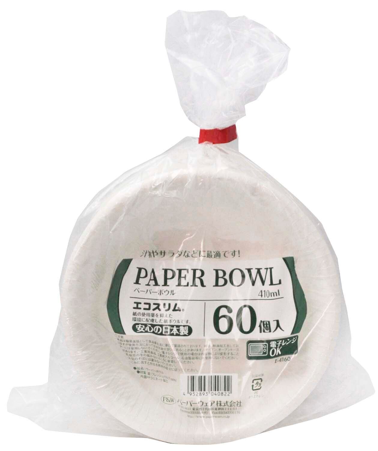 ペーパーウェア 使い捨て ボウル 15cm 増量 60枚 (50枚+10枚) 日本製 410ml 耐水 耐油 レンジOK 紙皿 深型 E-4160