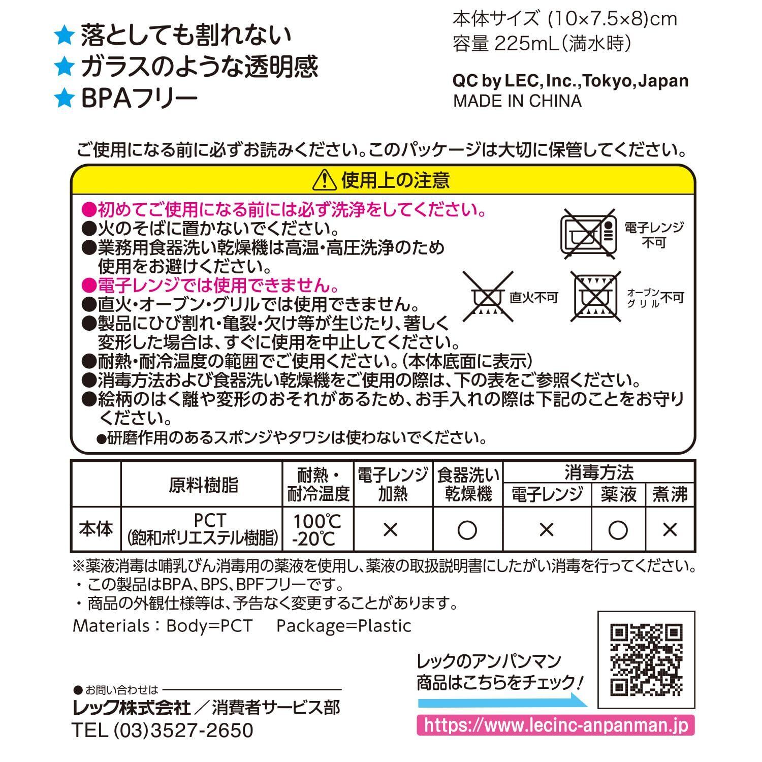 【数量限定】レック アンパンマン クリアーコップ 225mL / かたむかずに持てるワイド取手/食洗機 OK/落としても割れにくい
