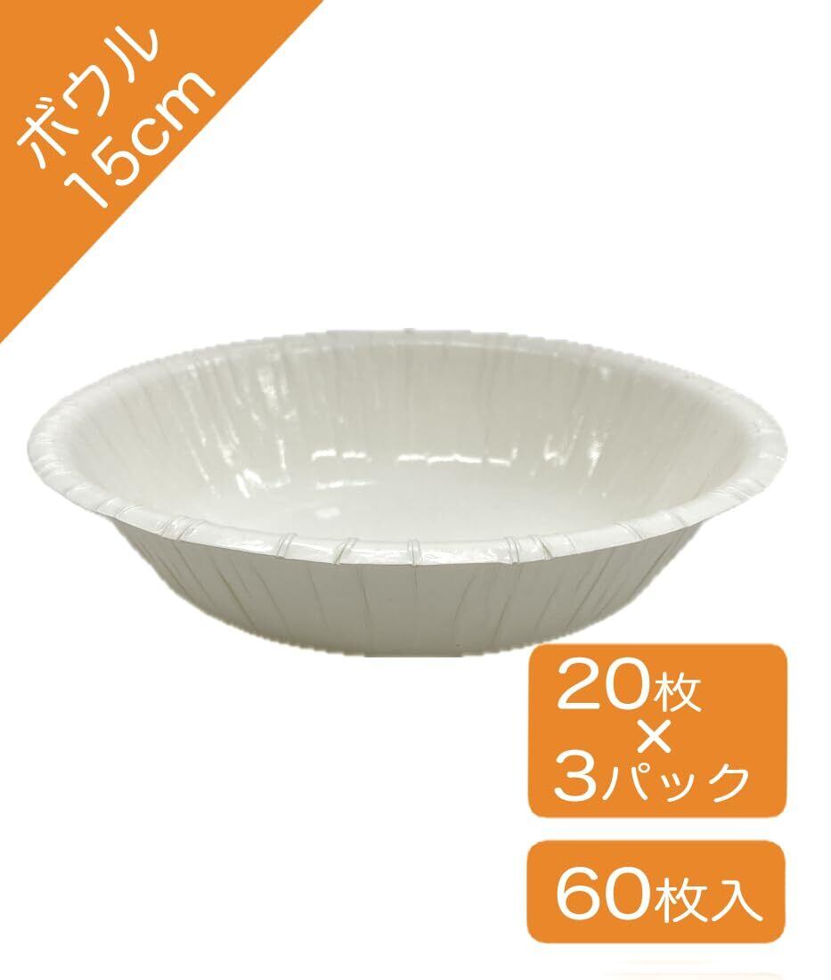 使い捨て 紙皿 ペーパーボウル 深型 15cm 60枚入 電子レンジ対応 耐水耐油加工 業務用 ペーパーB15