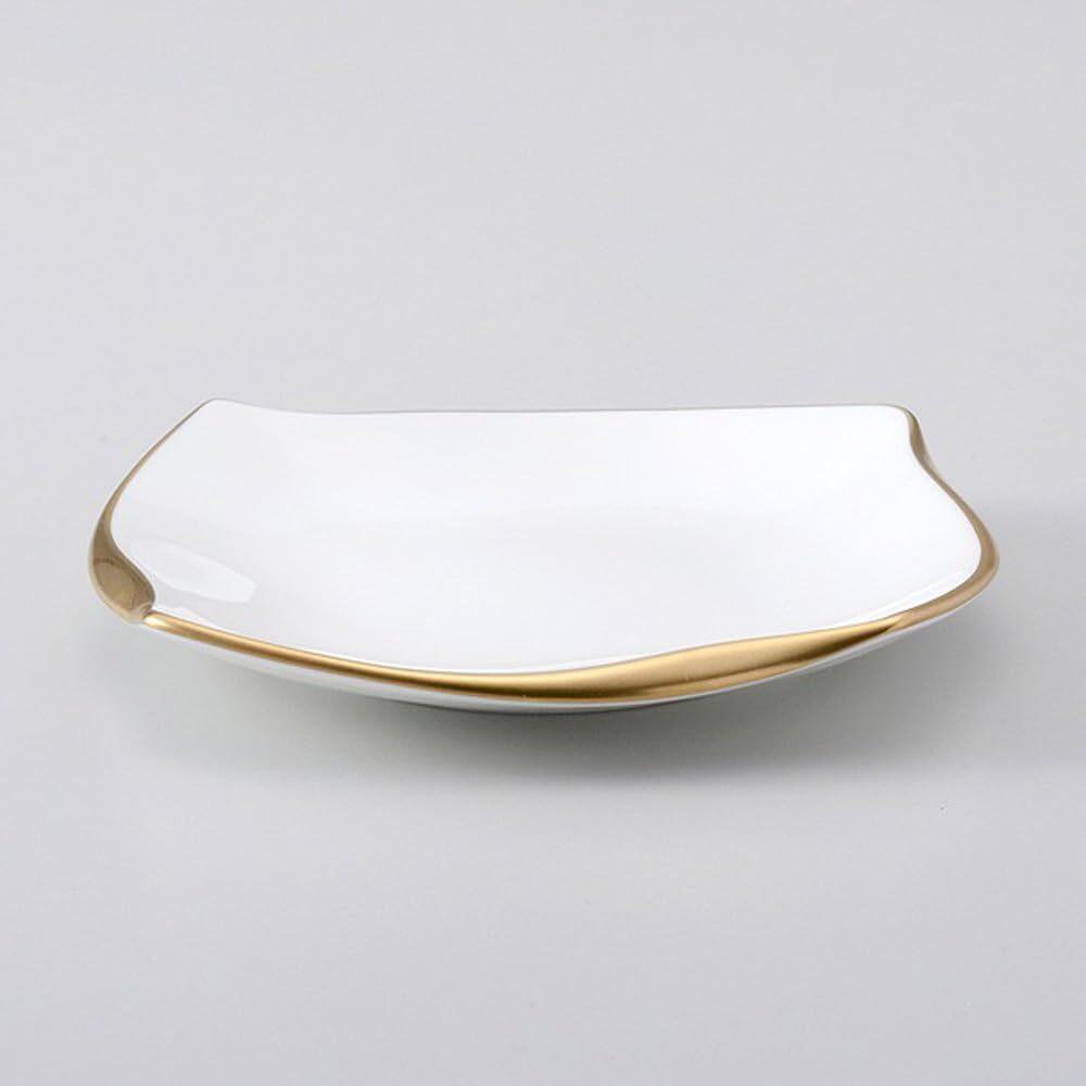 11cm角の小さなトレイ。流れるフォルムに金の縁がおしゃれ。お菓子や、オードブルなど一口を上品に盛り付けたいときに。 また、オフィスやご家庭でティーバッグトレイやレモントレイとして、アイディア次第で幅広い使い方ができる器です。