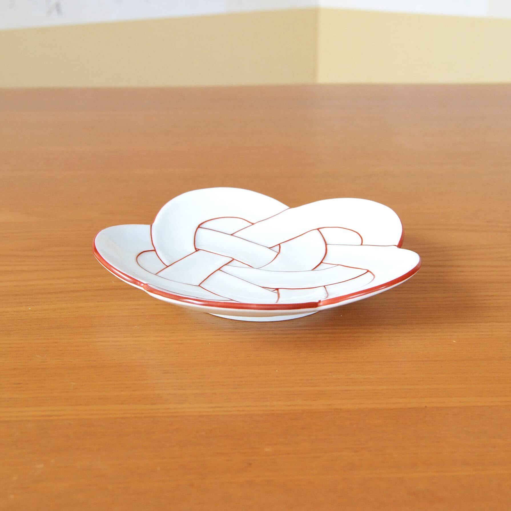正月 食器 和食器 銘々皿 15cm 縁起物 有田焼 梅むすび 赤 朱線 中皿 5枚セット 化粧箱入り