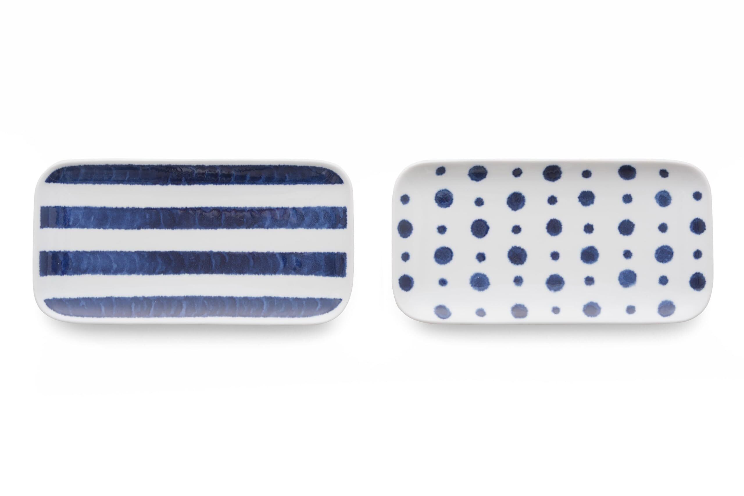 西海陶器(Saikaitoki) お皿 取り皿 中皿 おしゃれ セット 長皿 indigo 藍玉 長角皿 (2柄組)