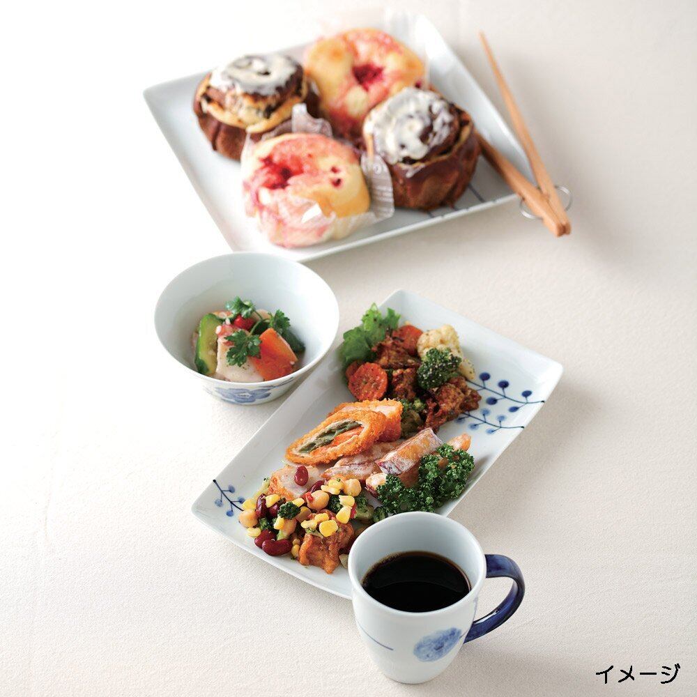手描きで少しずつ表情の違う絵柄にやさしさがあり、青い絵柄と白い器のコントラストは、まるでキャンバスのようですプレートやマグ、ボウルは、洋の食事にも合わせられます仕様:食洗機対応仕様:電子レンジ対応商品サイズ:約26×14.5×2cm