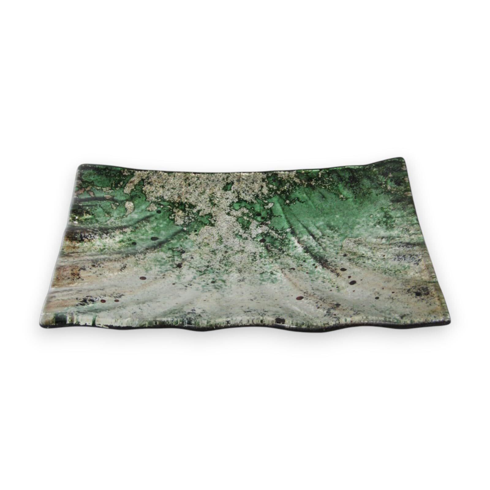 J-kitchens 刺身皿鉢 お皿 ガラス プレート 長方形 皿 プレ-ト 小 グリーン ゴールド 15cm 彩蘭