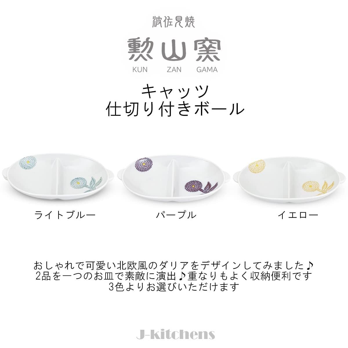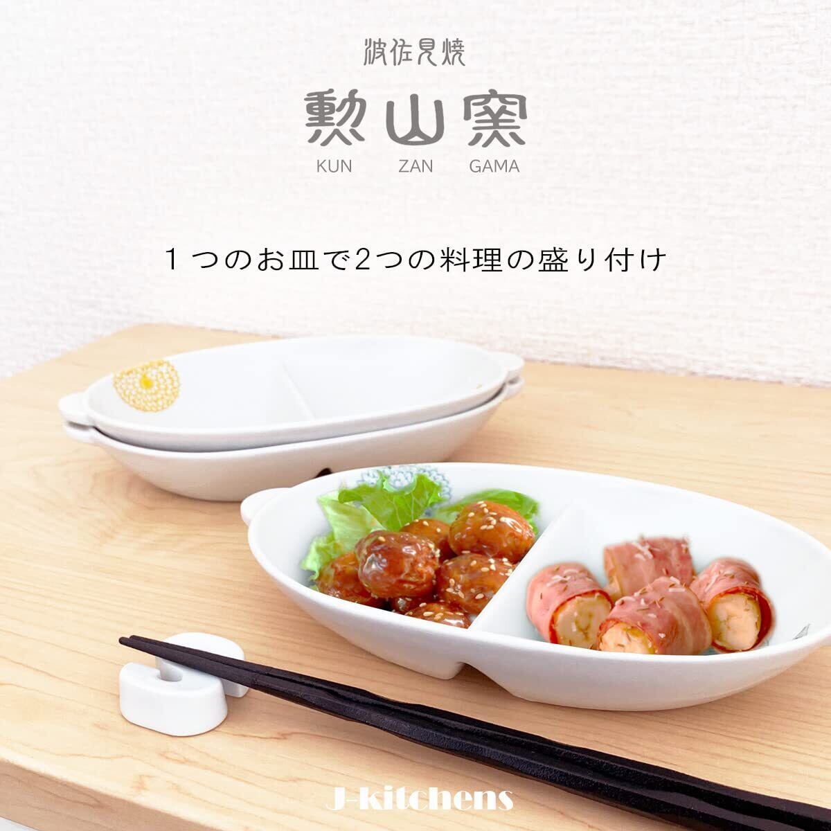 J-kitchens 勲山窯 プレート 皿 深め 仕切付き 21x12x3.2cm 波佐見焼 日本製 ダリア パープル