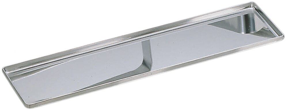 お好み焼きのソース入れや油引きを収納するステンレス製の長皿です。