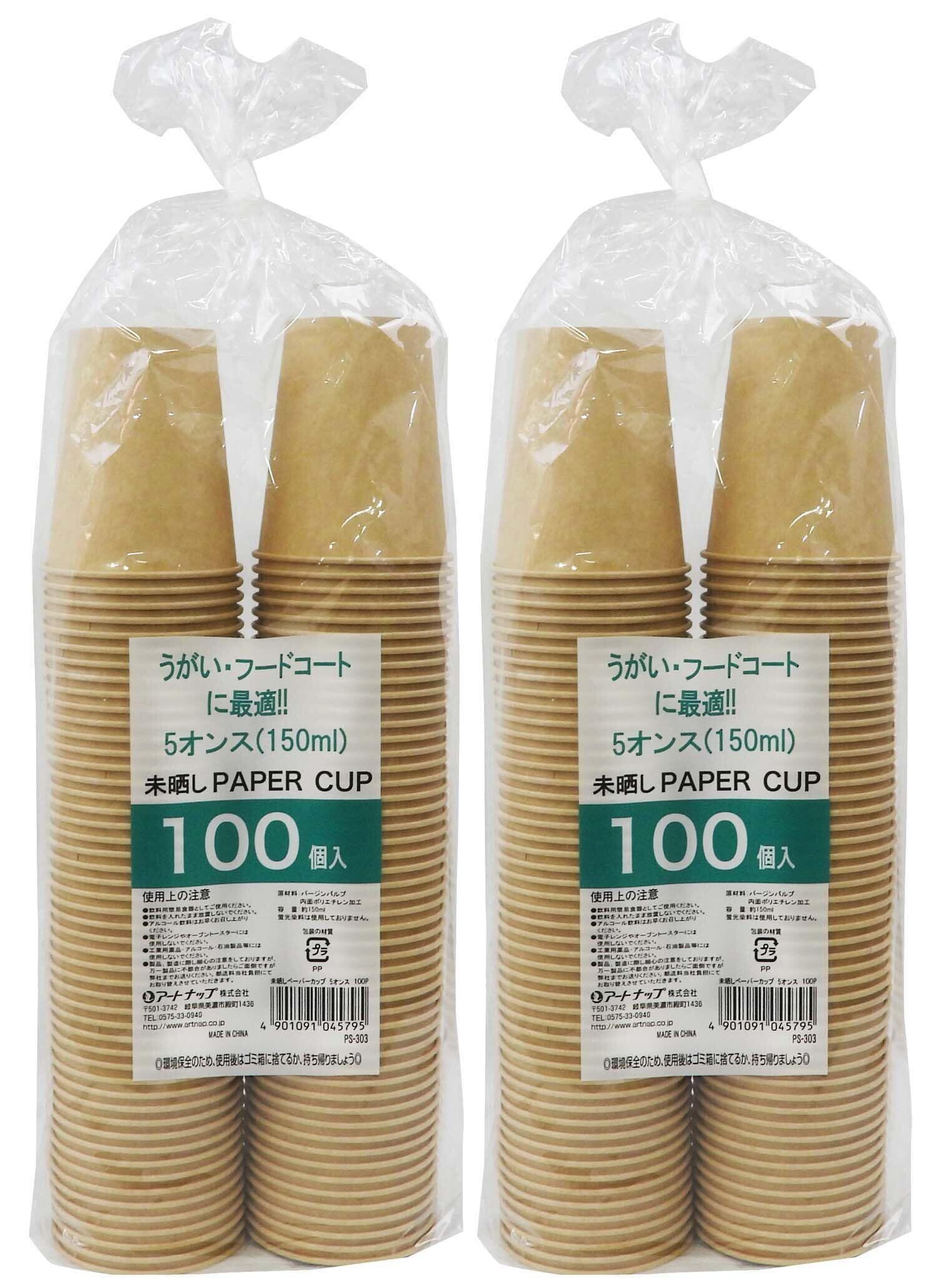 アートナップ(Artnap) 業務用 未晒し 紙コップ ペーパーカップ 5オンス 150ml ブラウン 100個 2個セット 口径6.5×底径4.6×高さ7.3cm PS-303