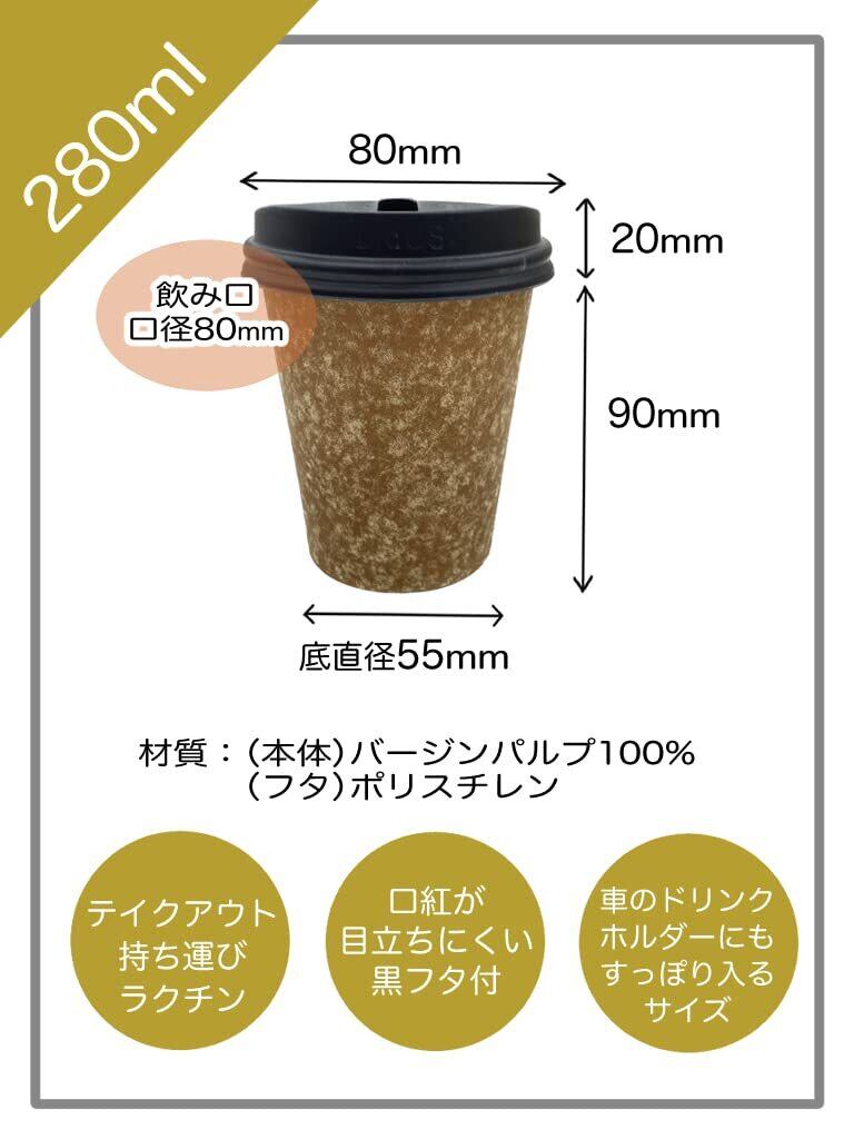 ニッチプラス(Niche Plus) テイクアウト カフェサイズ 紙コップ クラフト 未晒 280ml 専用フタ付(開閉式) 50セット