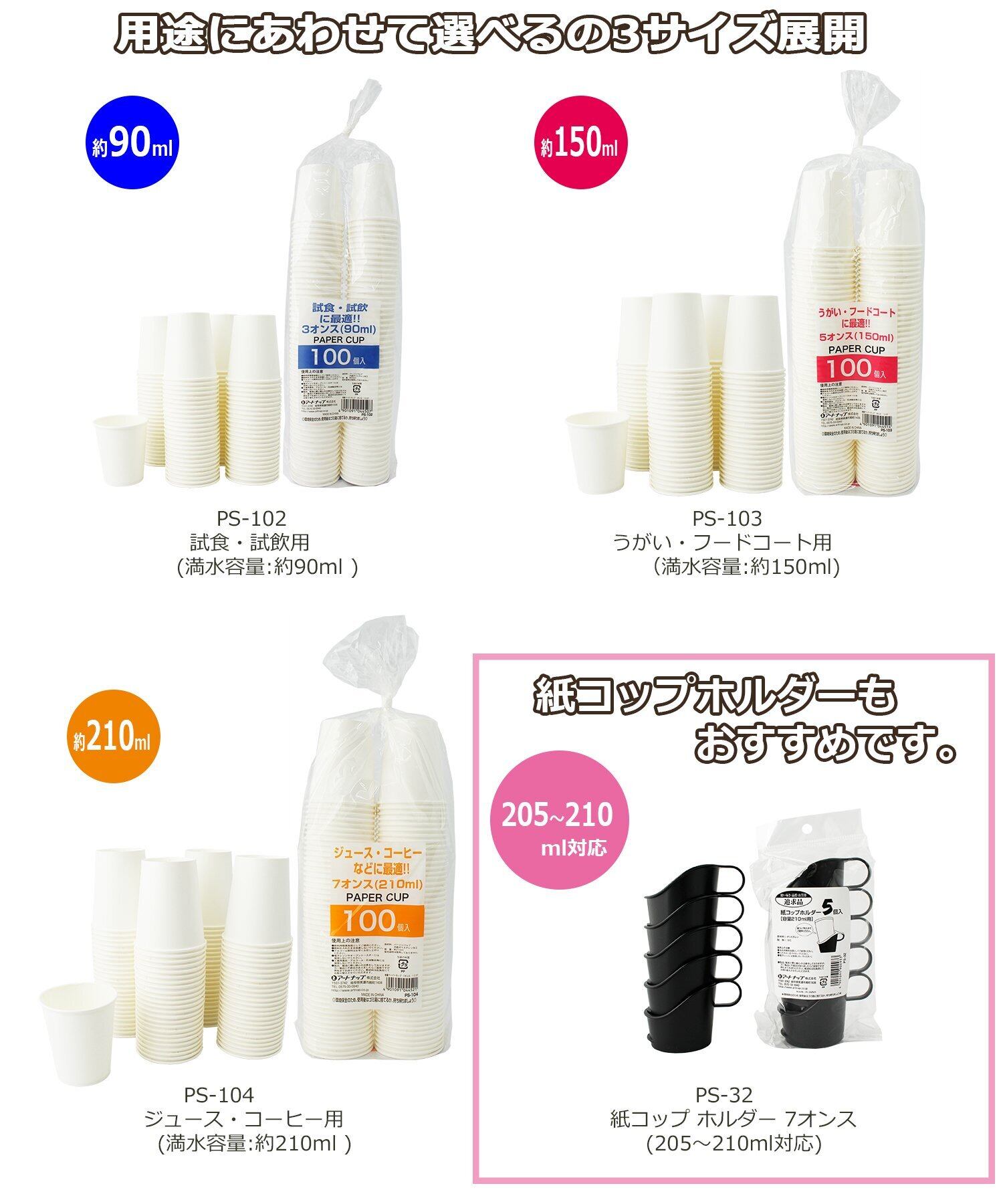 対応ペーパーカップ:容量205~210ml(7オンス)