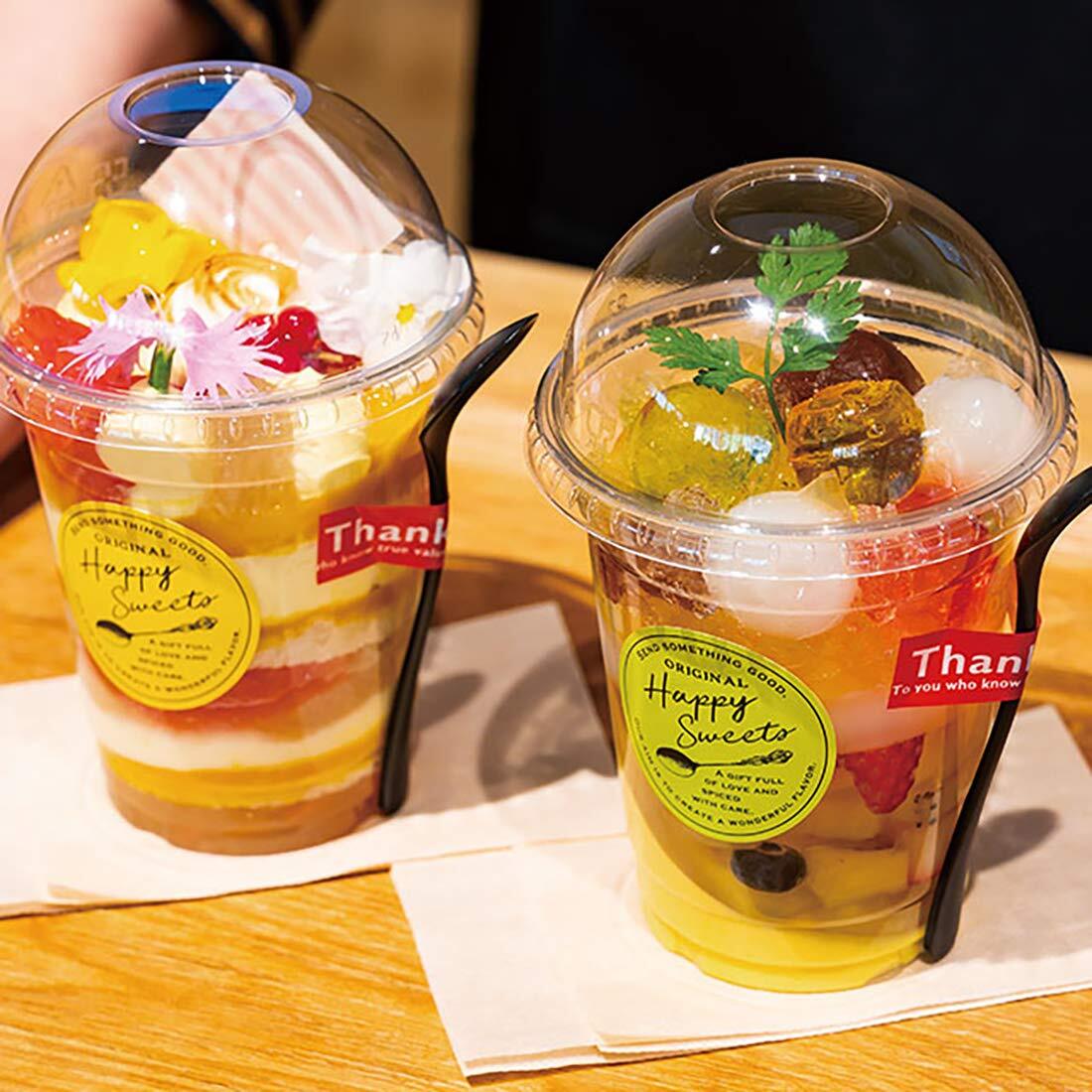 ムースやゼリー、パフェなどのカラフルなカップスイーツにおすすめのクリアカップです。クリアカップに合わせたフタもご用意しています。