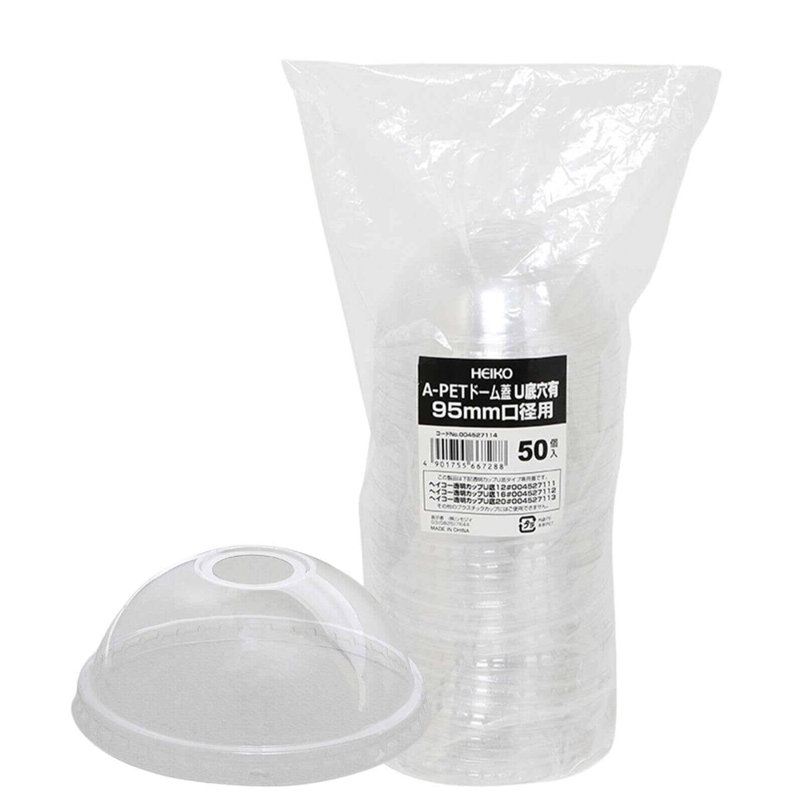【在庫セール】HEIKO 透明カップ ドーム蓋 口径95mm用 O穴付き 50個入 004527114