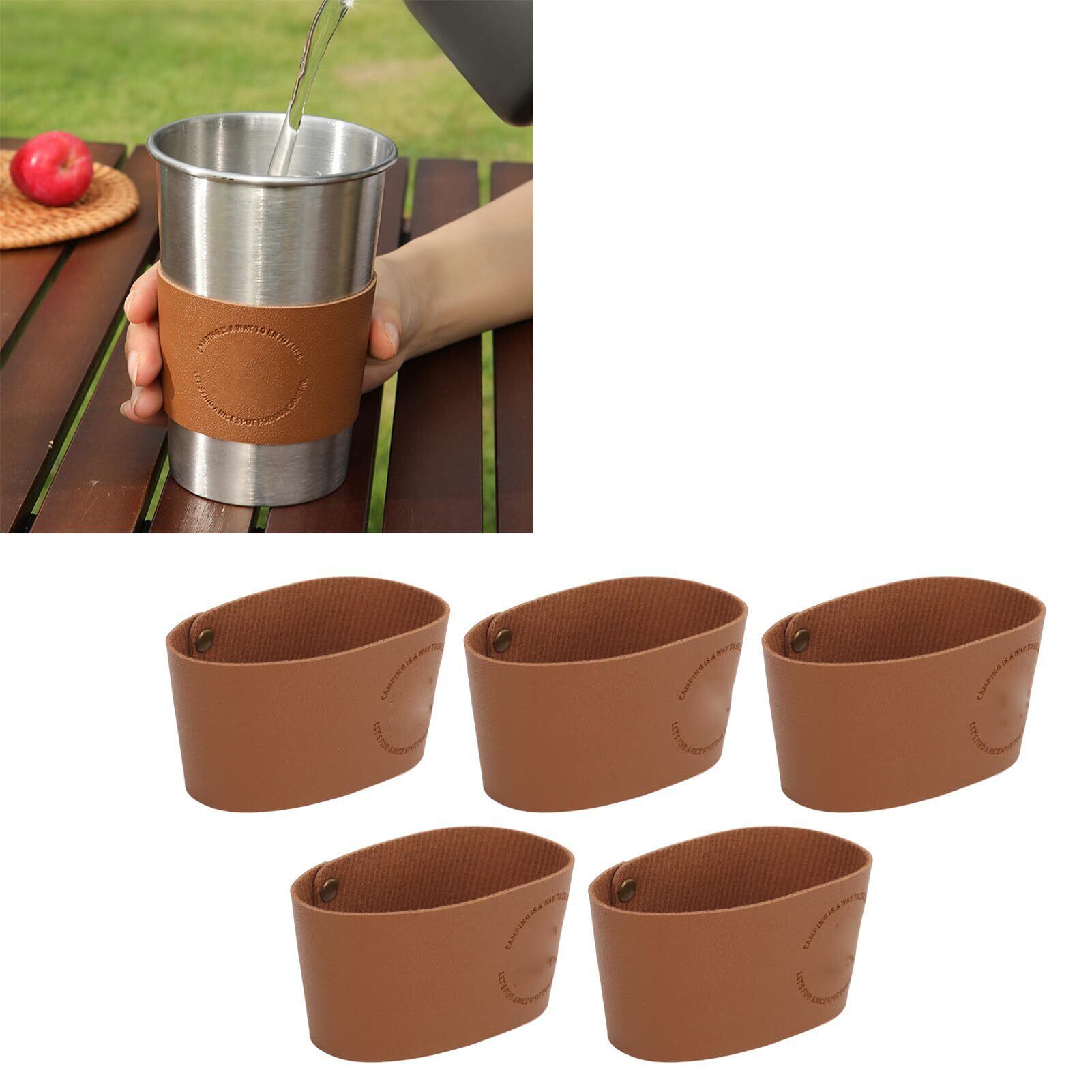 【数量限定】コーヒーカップスリーブ5個、断熱耐熱PUレザーホットカップスリーブ、温かい飲み物と冷たい飲み物を保持、火傷防止、滑り止め、再利用可能なホットカップスリーブ、手の保護カップスリーブ